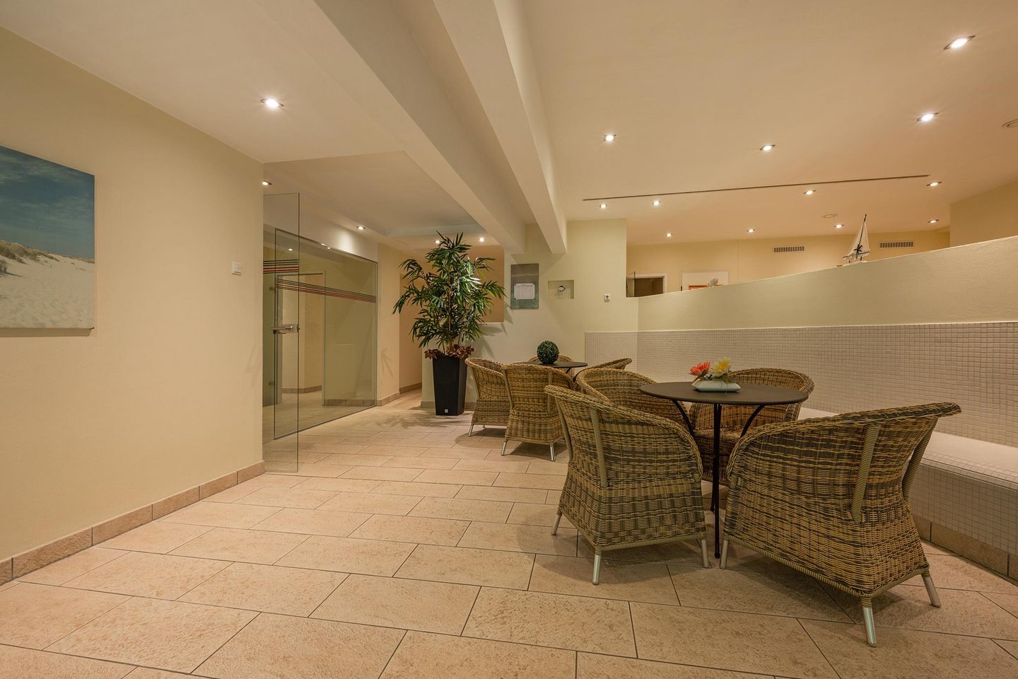 Die Highlights der Unterkunft sind zweifellos das hauseigene Schwimmbad, die Sauna und der Fitnessraum. Diese Einrichtungen sorgen für zusätzliche Entspannung und Abwechslung, sei es an regnerischen Tagen oder nach einem Ausflug an den Strand.