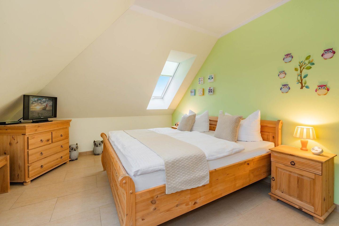 Die Wohnung verfügt über ein Schlafzimmer mit einem gemütlichen Doppelbett, das erholsamen Schlaf garantiert. Im Wohnbereich sorgt eine komfortable Schlafcouch für eine zusätzliche Übernachtungsmöglichkeit. Ein Highlight sind die zwei TV-Geräte, die sowohl im Schlafzimmer als auch im Wohnbereich für Unterhaltung sorgen - ideal für gemütliche Abende oder entspannte Stunden zwischendurch.