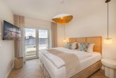 Das separate Schlafzimmer ist mit einem komfortablen Boxspringbett (1,80 m x 2,00 m), einem großen Kleiderschrank sowie Verdunklungsmöglichkeiten für erholsamen Schlaf ausgestattet. Auch von hier aus haben Gäste direkten Zugang zum großzügigen Balkon, der zum Verweilen im Freien einlädt. Das modern gestaltete Bad bietet mit seiner bodengleichen Dusche und der eigenen Sauna (Nutzung mit Münzautomat) einen Ort der Entspannung und Erfrischung – ideal nach einem ausgedehnten Strandspaziergang oder einem aktiven Tag in der Natur.