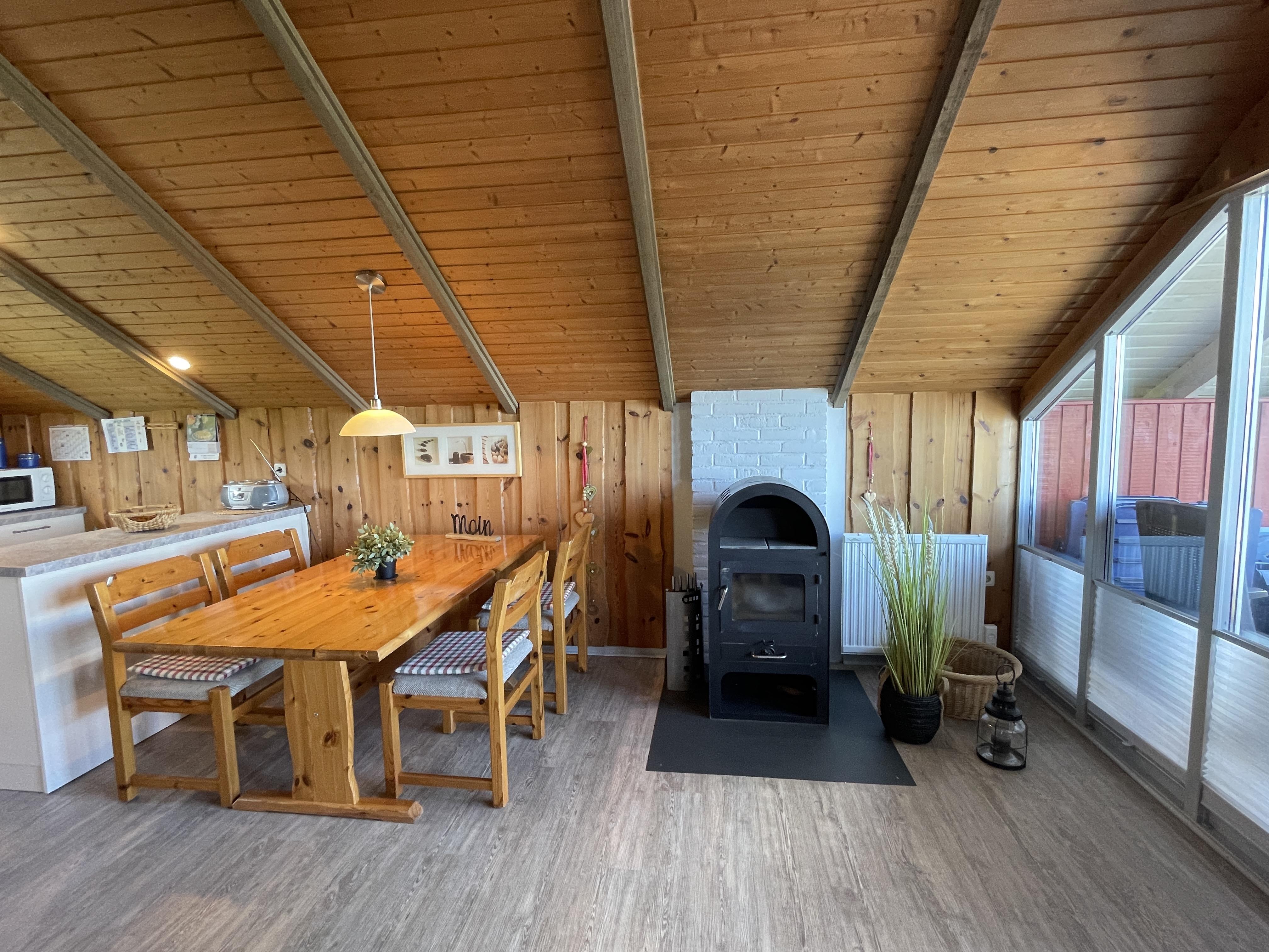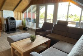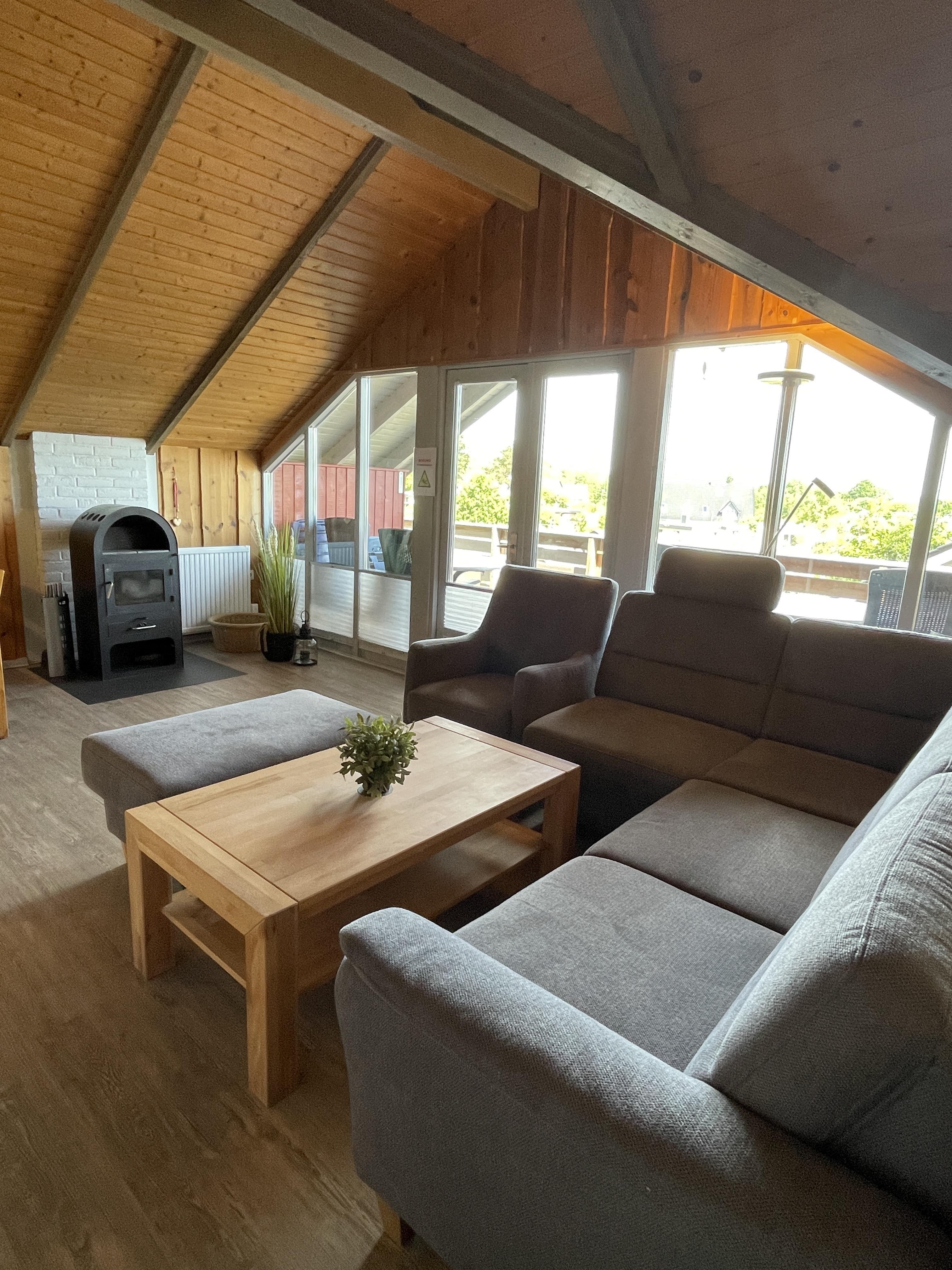 • 1 Wohnzimmer mit Holzofen, TV, Sitzgruppe