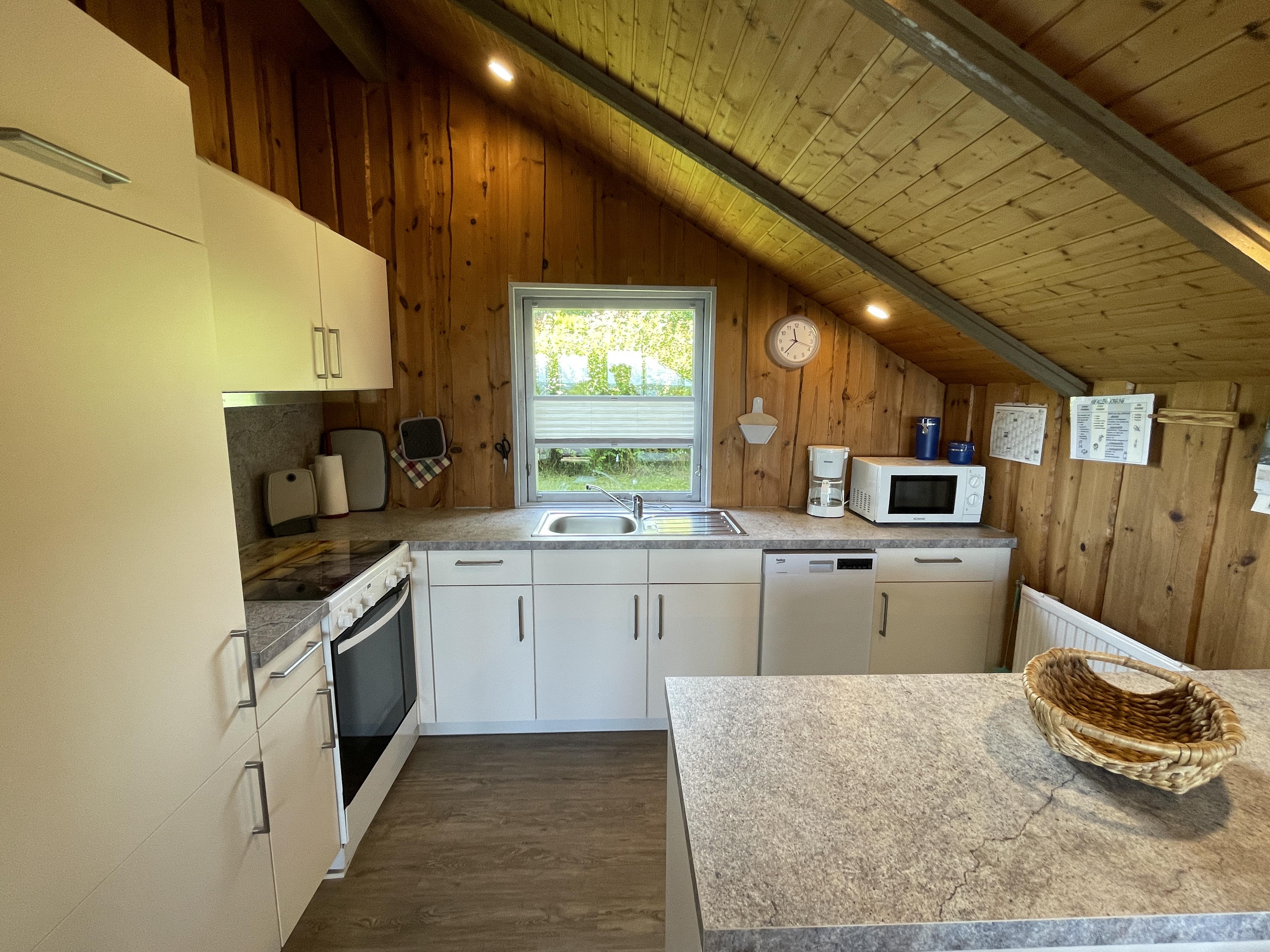 • 1 offene Einbauküche mit Geschirrspülmaschine, Kaffeemaschine, Mikrowelle und alles was dazu gehört.