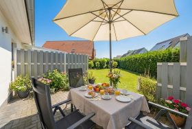 Von hier aus gelangen Sie direkt auf die sonnige Terrasse mit West-Südwest-Ausrichtung, die mit gemütlichen Gartenmöbeln ausgestattet ist. Besonders in den Abendstunden können Sie hier die warmen Farben des Sonnenuntergangs genießen und den Urlaubstag entspannt ausklingen lassen.