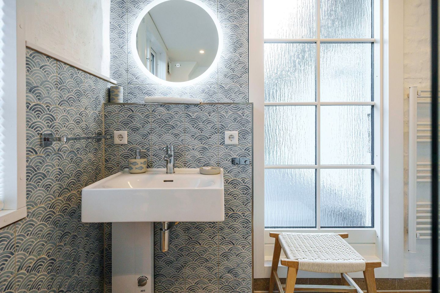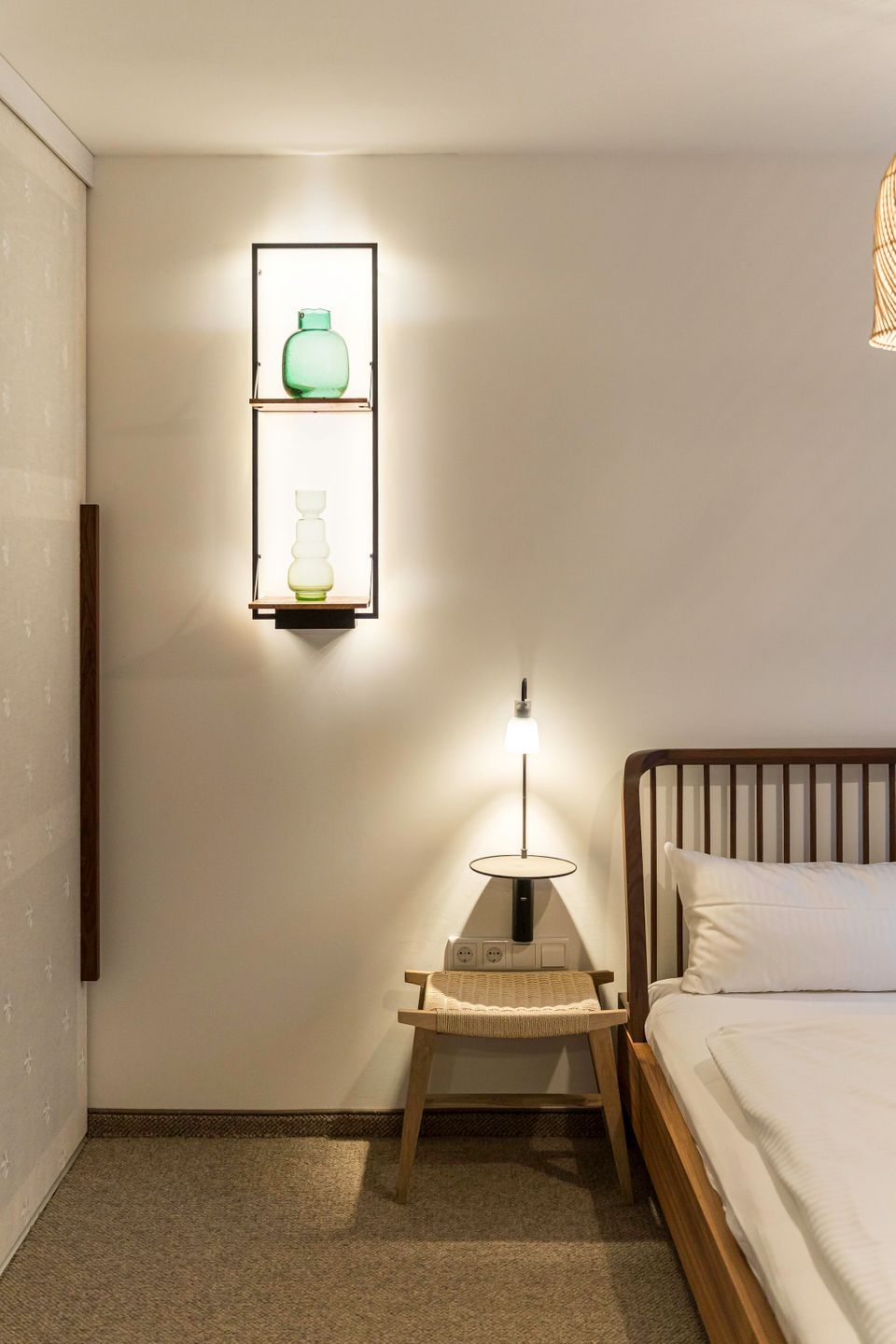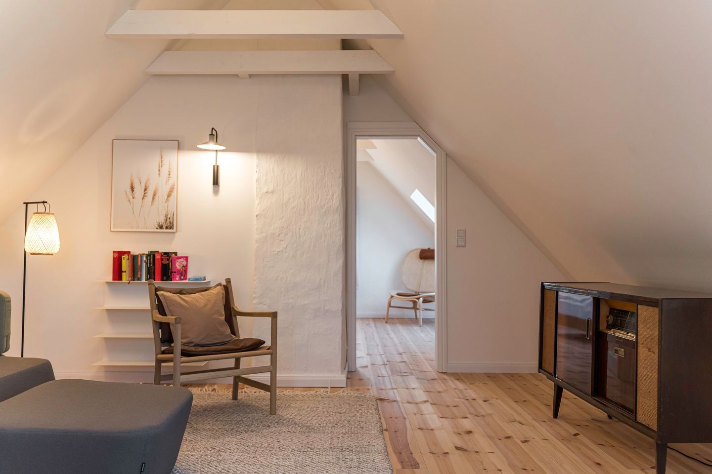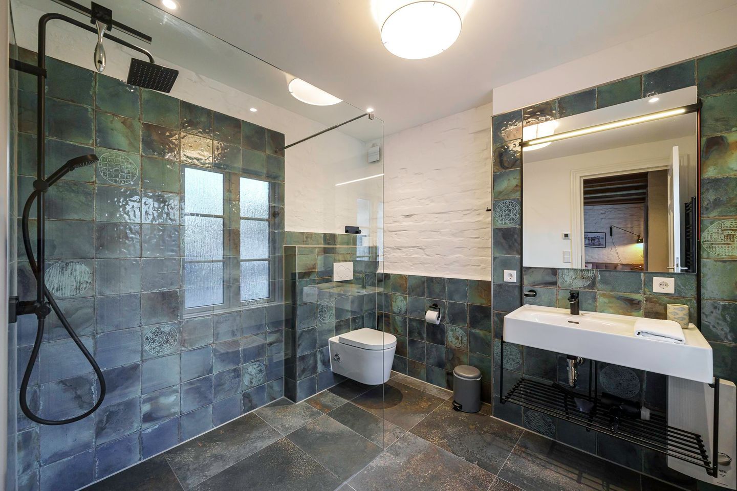 Im Erdgeschoss befindet sich ein geschmackvoll eingerichtetes Schlafzimmer mit komfortablem Doppelbett (1,80 m x 2,00 m), Verdunklungsmöglichkeiten und großzügigem Kleiderschrank. Ein weiteres Schlafzimmer mit Doppelbett und offenem Kleiderschrank liegt im oberen Geschoss und bietet einen ruhigen Rückzugsort. Zwei moderne, stilvolle Bäder mit bodengleicher Dusche stehen den Gästen zur Verfügung und sorgen auch bei mehreren Personen für entspannten Komfort.