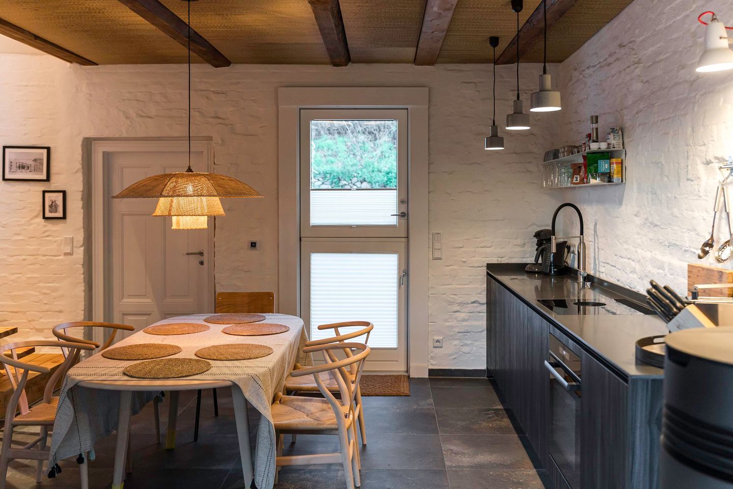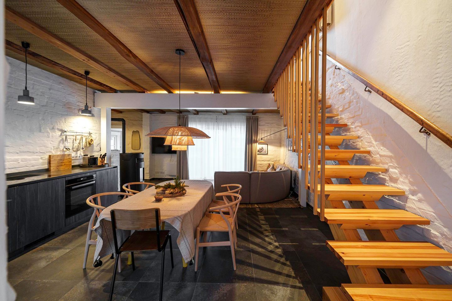 Mit einer Wohnfläche von 131 Quadratmetern, verteilt auf zwei Etagen, bietet das Ferienhaus viel Platz für Familien, Paare oder Freunde, die Wert auf Komfort, Stil und Großzügigkeit legen. Der offene Wohn- und Essbereich bildet das Herzstück des Hauses und überzeugt durch hochwertige Möbel, liebevolle Dekoration und ein stimmiges Einrichtungskonzept, das von Green Living gestaltet wurde. Die moderne Küche ist offen integriert und mit Backofen, Induktionskochfeld und Spülmaschine bestens ausgestattet, sodass gemeinsames Kochen und Genießen auch im Urlaub selbstverständlich ist. Der Esstisch bietet ausreichend Platz für Frühstücke, gemeinsame Mahlzeiten oder gesellige Abende, während der Wohnbereich mit Flat-TV sowie der Möglichkeit zur Nutzung von Amazon Prime und Netflix für entspannte Stunden sorgt.