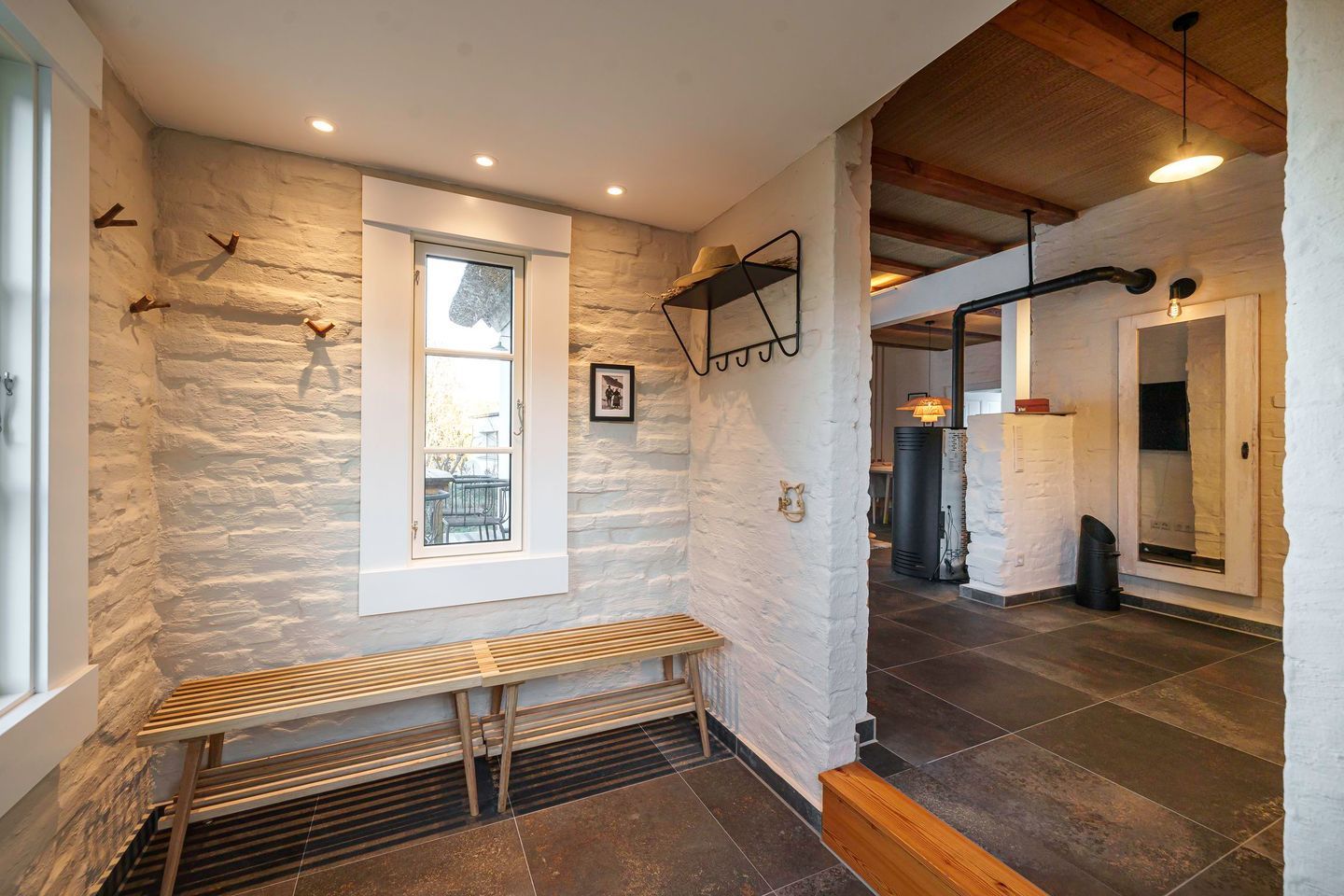 Besonders in der kühleren Jahreszeit schafft der Kamin eine behagliche Wohlfühlatmosphäre und macht das Haus zu einem gemütlichen Feriendomizil auch im Herbst und Winter. Im Obergeschoss steht zusätzlich ein ausziehbares Schlafsofa zur Verfügung, das sich ideal als Aufbettung für Kinder eignet.