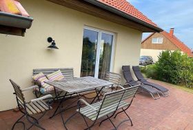 Ein echtes Highlight ist der wunderschöne Außenbereich: Die große Terrasse mit Gartenmöbeln, Sonnenliegen, Sonnenschirm und Grill lädt zu entspannten Stunden im Freien ein. Hier genießen Sie den Blick auf die Flensburger Förde, während nur wenige Schritte entfernt bereits der Strand auf Sie wartet. Ob Frühstück in der Morgensonne, Grillabend mit Freunden oder einfach ein ruhiger Nachmittag mit Meerluft – hier entsteht echtes Urlaubsgefühl.