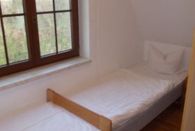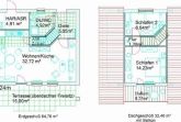 Im Erdgeschoß befindet sich der Wohnraum mit Küchenzeile, Du/WC. Die beiden separaten Schlafzimmer - 1 x Doppelbett, 1 x 2 Einzelbetten befinden sich im Obergeschoß.