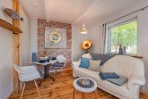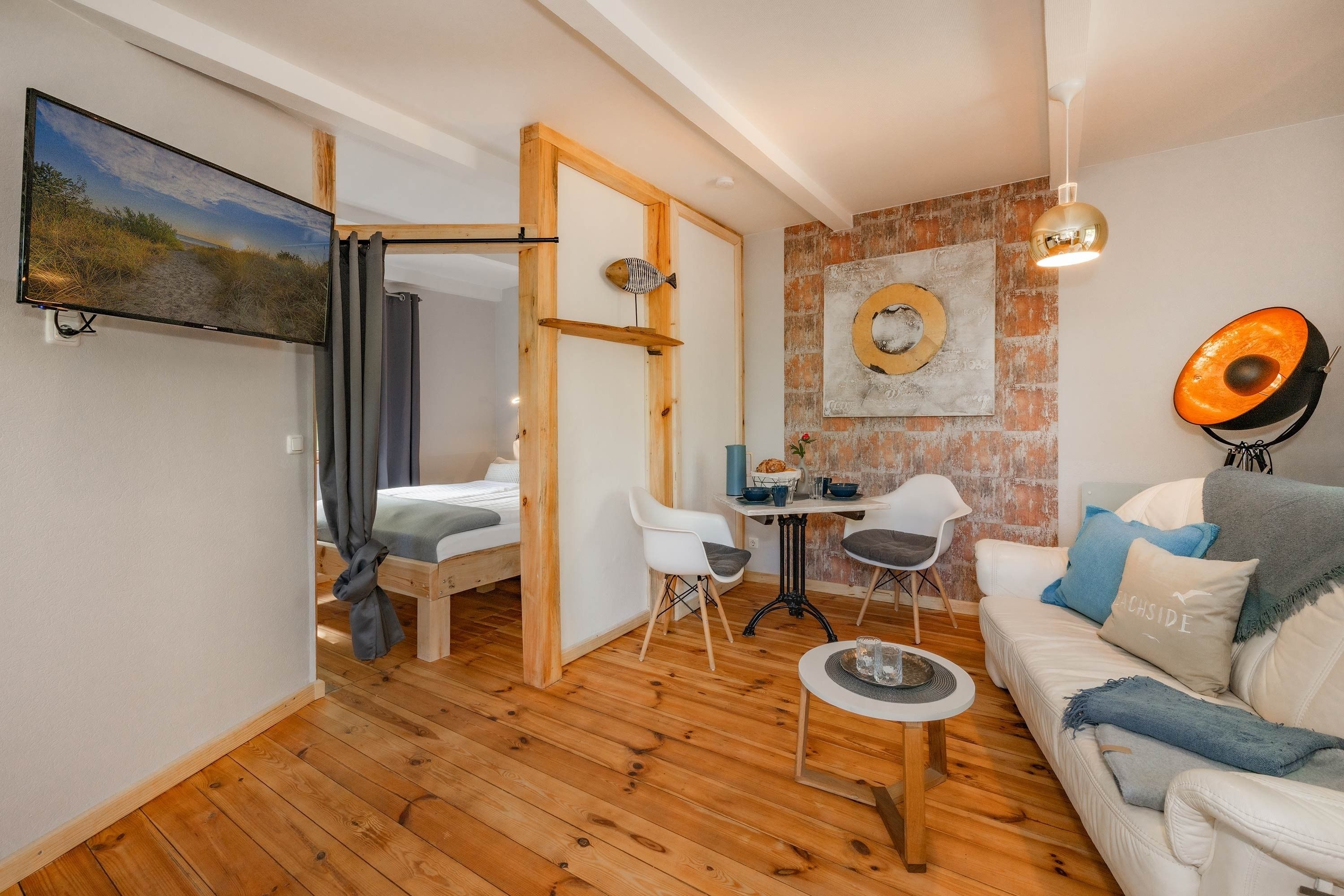 Das Ferienhaus Albatros bietet Platz für 2 Personen. Hier können Sie auch ihre Fellnase mitbringen. Es verfügt über ein offenes Wohnraumkonzept mit einer offenen kleinen Küchenzeile, die ihnen alles bietet, um sich auch selbst gut versorgen zu können. Im Wohnraum finden sie ein schönes Plätzchen zum Sitzen und auch eine gemütliche Couch zum Entspannen. Das kleine Badezimmer mit Fenster, ist mit WC und Dusche ausgestattet. Im offenen angrenzenden Schlafzimmer finden Sie ein rundum zugängliches Doppelbett und ein großzügiges selbstgebaute Regal für ihr Reisegepäck.