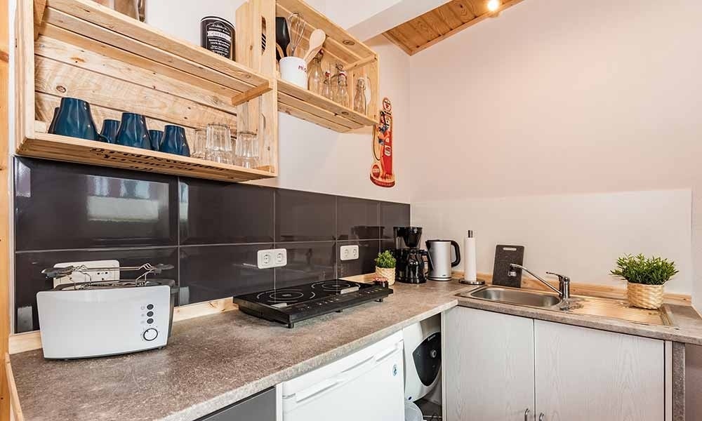 Das Ferienhaus Heimathafen bietet Platz für bis zu 2 Personen. Es verfügt über ein offenes Wohnraumkonzept mit einer offenen kleinen Küchenzeile, die ihnen alles bietet, um sich auch selbst gut versorgen zu können. Im Wohnraum finden sie ein schönes Plätzchen zum Sitzen. Das Highlight ist das restaurierte gemütliche Sofa zum Entspannen und ein bequemer Lesesessel. Das kleine Badezimmer mit Fenster, ist mit WC und Dusche ausgestattet. Im Schlafzimmer finden sie ein eingebautes Doppelbett und einen Kleiderschrank für ihr Reisegepäck.