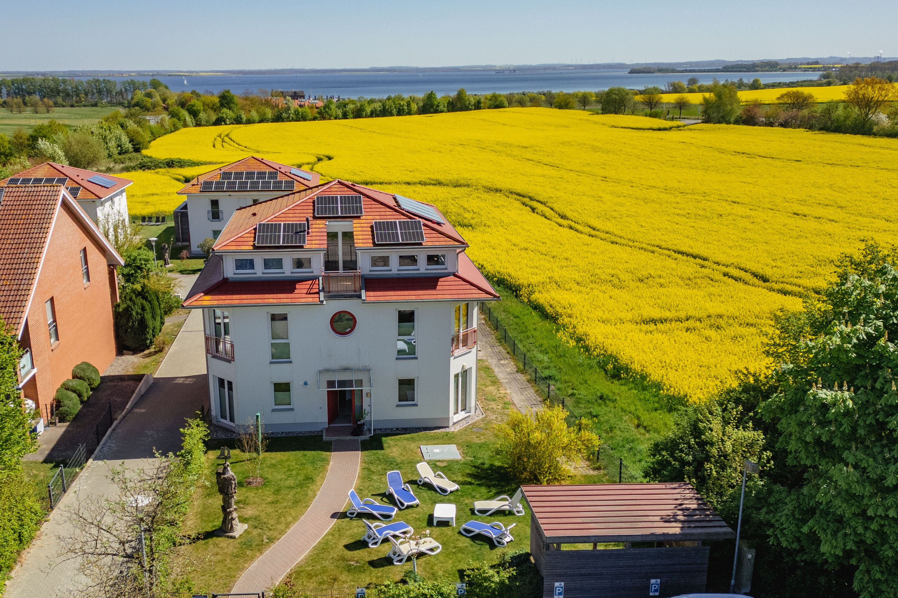 Alle Schlafzimmer sind mit Fernsehern ausgestattet, und Sie können Ihre Lieblingsmusik entweder über den TV oder per Bluetooth über Boxen abspielen. Die Sitzgruppen im Innenbereich sowie auf der großzügigen Terrasse bieten Platz für bis zu 8 Personen. Eine große Markise schützt vor Sonne und Regen, während die Strandkörbe und Sitze draußen für Urlaubsfeeling sorgen.