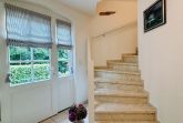 Das großzügige Wohnzimmer im Erdgeschoss lädt zum Verweilen ein. Es ist mit gemütlichen Sofas und einem modernen Fernseher ausgestattet, sodass Sie entspannte Abende bei einem guten Film oder beim Lesen eines Buches verbringen können. Die großen Fenster im Wohnzimmer bieten einen Blick in den Garten und auf die angrenzenden Terrassen, wodurch der Raum besonders lichtdurchflutet und einladend wirkt.