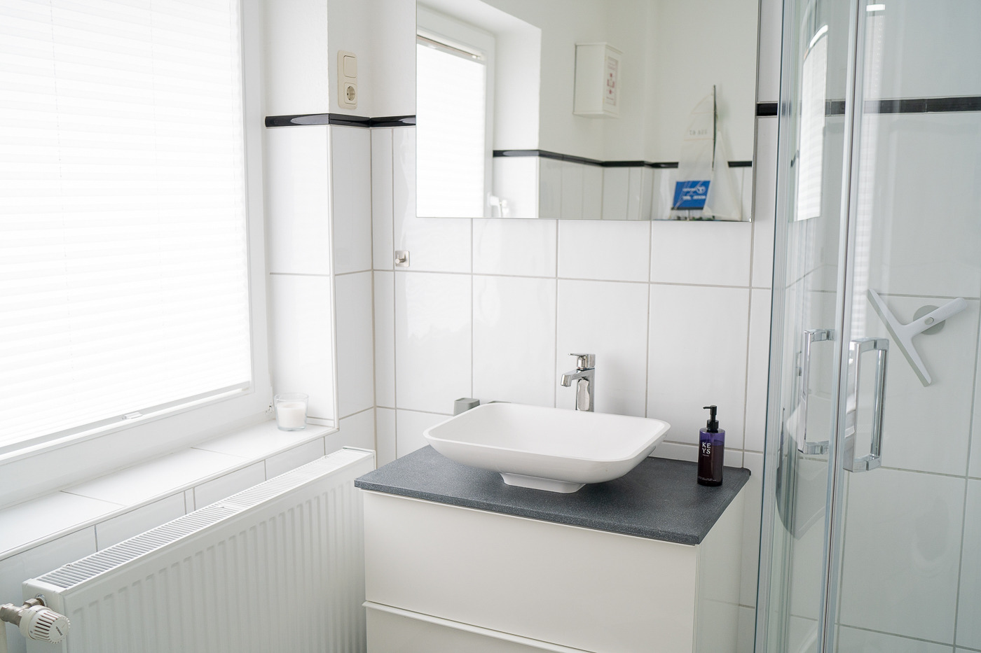 Das Haus betretet Ihr durch den Flur. Links ist das neue Duschbad mit Waschtisch und WC.