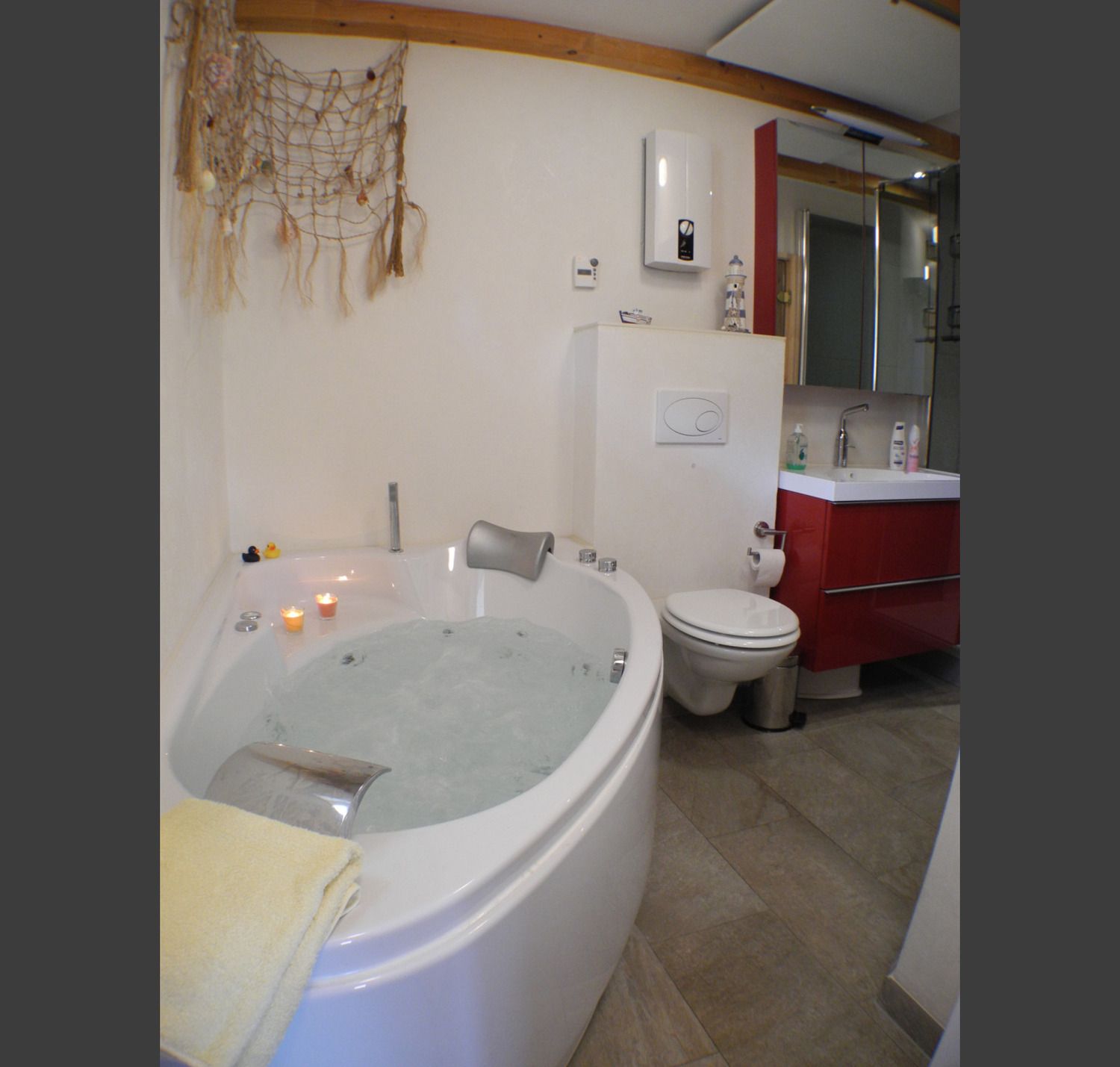 Bio-Sauna – Whirlpool der Superklasse– große Dusche – Infrarot-Wellnesswärme – Kaminofen – Internet