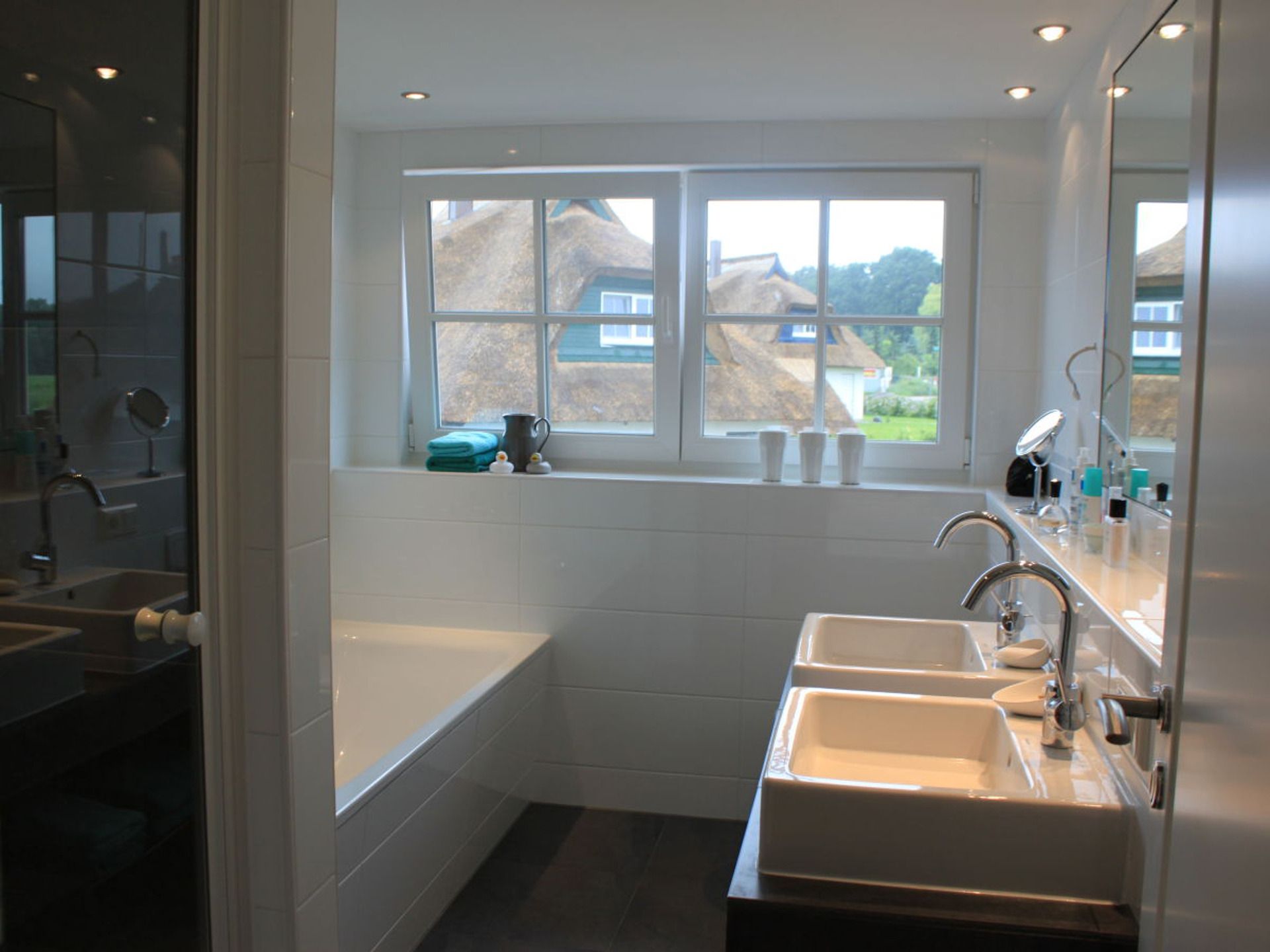 Im 115 qm großen, geräumigen und sonnendurchfluteten Reethaus befindet sich im EG eine gut ausgestattete Küche mit Blick auf die Essecke und das Wohnzimmer mit Kaminofen und Flachbild-TV, ein behagliches Schlafzimmer, Sauna und Badezimmer mit Dusche.
