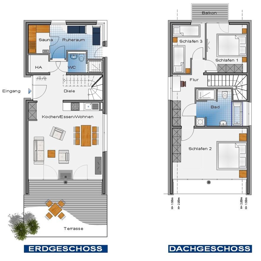 Neues, qualitativ hochwertig eingerichtetes Domizil mit finnischer Sauna, luxuriösem Wohn-/Essbereich, Kamin, 3 Schlafzimmer (insgesamt 6 Erwachsenenbetten), großzügiger holzgetäfelter Terrasse.