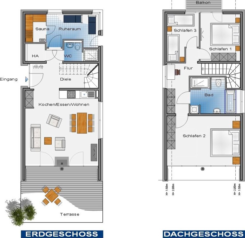 Neues, qualitativ hochwertig eingerichtetes Domizil mit finnischer Sauna, luxuriösem Wohn-/Essbereich, Kamin, 3 Schlafzimmer (insgesamt 6 Erwachsenenbetten), großzügiger holzgetäfelter Terrasse.