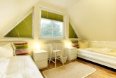 Das Schlafzimmer im Giebel hat einen wundervollen Ausblick auf alte Bäume , den Deich und (teilweise) das Meer.