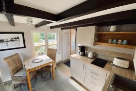 Ja, Sie haben richtig gelesen: Bei uns beziehen Sie ein ehemaliges Stromhäuschen. Aber keine Angst, wir haben alle Kabel und Leitungen, die niemand mehr braucht, entfernt und dafür eine liebevolle Ferienwohnung für Sie vorbereitet (2012 komplett umgebaut!). Das kleine Ferienhaus ist für junge oder junggebliebene Gäste geeignet (Deckenhöhe 1,90 und steile Innentreppen. Im Erdgeschoss befindet sich eine kleine Küche mit Essbereich sowie ein modernes Bad. Im ersten Obergeschoss ein kleines Wohnzimmer mit Sat-TV und Sitzgruppe. Und unter dem Dach ein Schlafzimmer mit zwei Einzelbetten. Zum Ferienhaus gehört selbstverständlich auch eine ruhige Terrasse und ein PKW-Stellplatz.