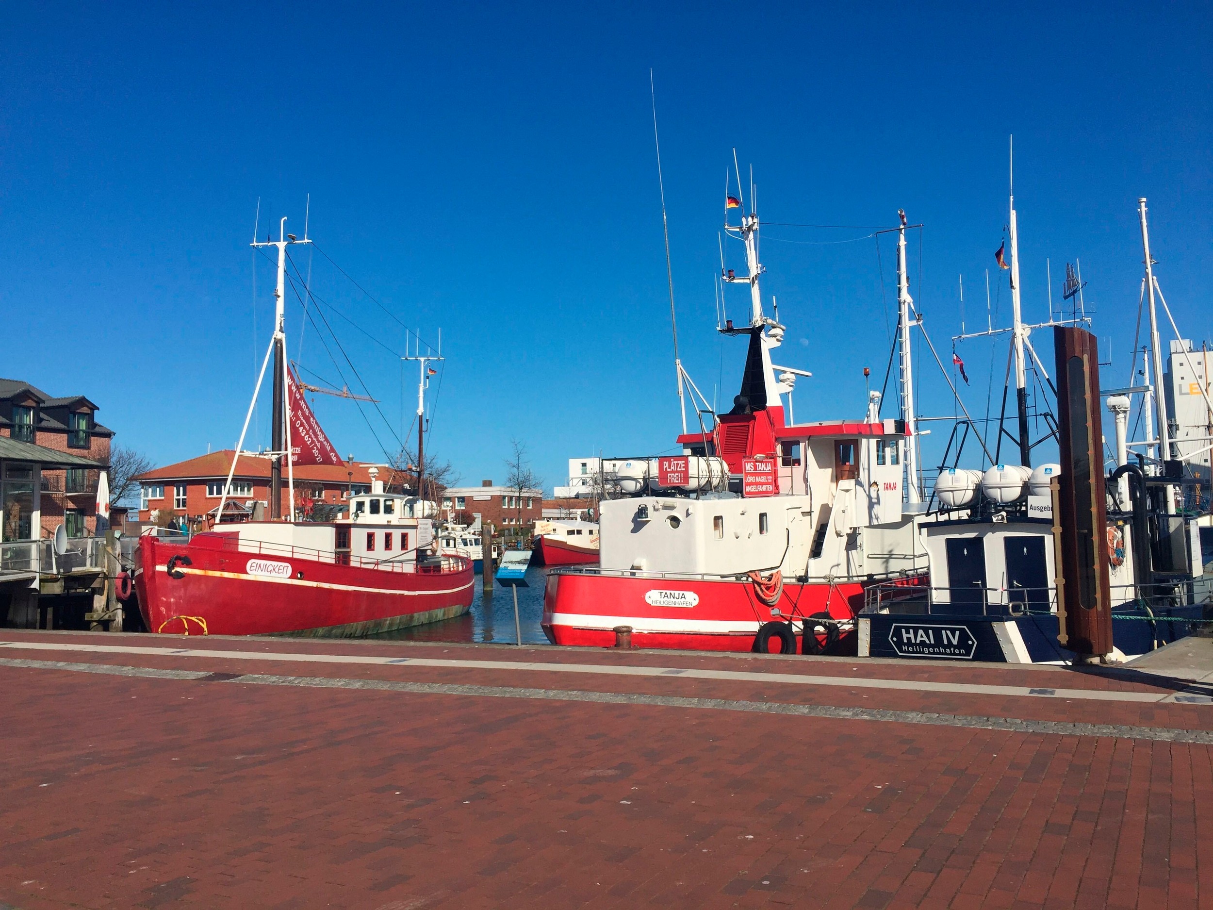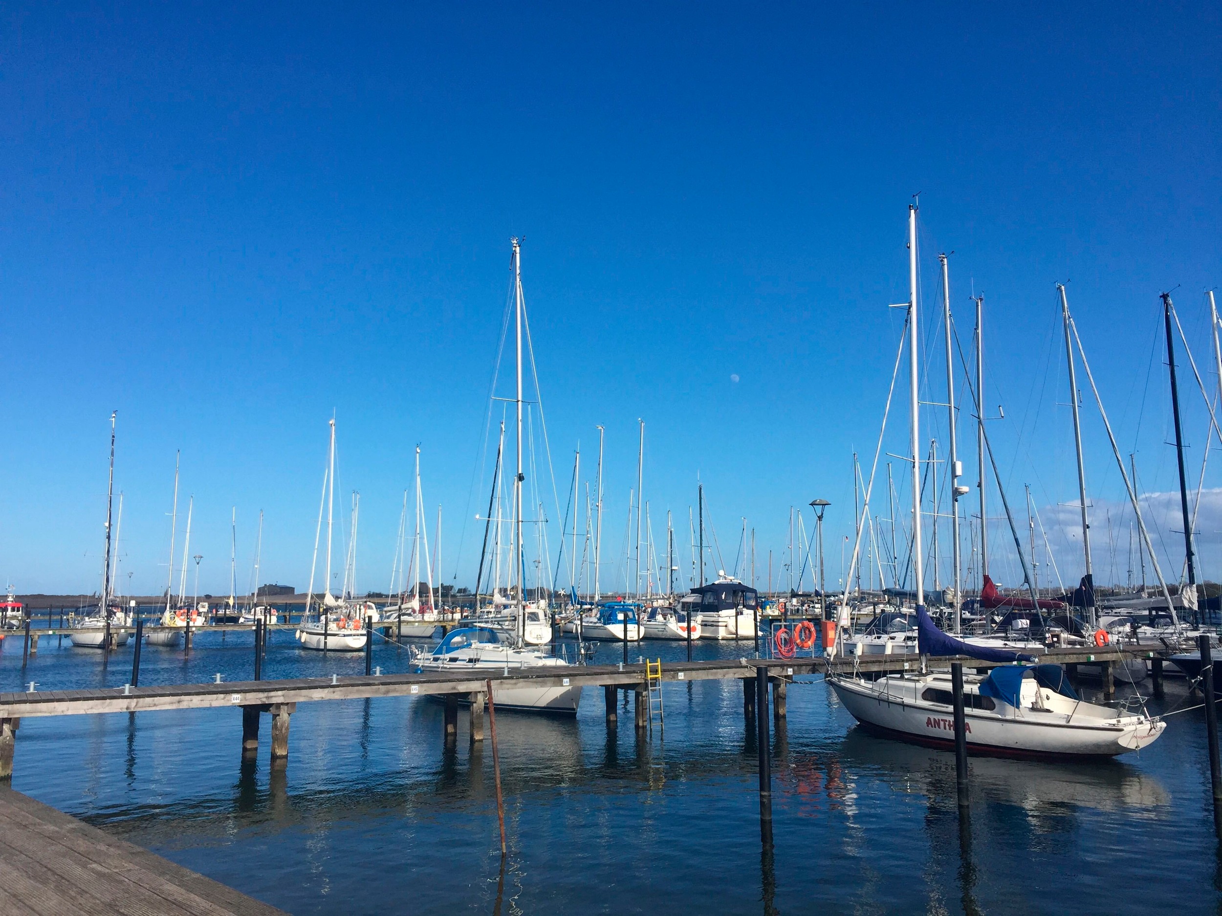 Ein Schlafraum hat bodentiefe, verdunkelbare Fenster mit Blick auf den Yachthafen. Vom anderen Schlafraum aus können Sie die Vögel auf dem Binnensee beobachten und auch die Ostsee sehen. In diesem Raum lassen sich die Betten alternativ als zwei Einzelbetten stellen. Ein drittes, komfortables Bett in diesem Raum wird bei Nichtgebrauch zum Sessel.