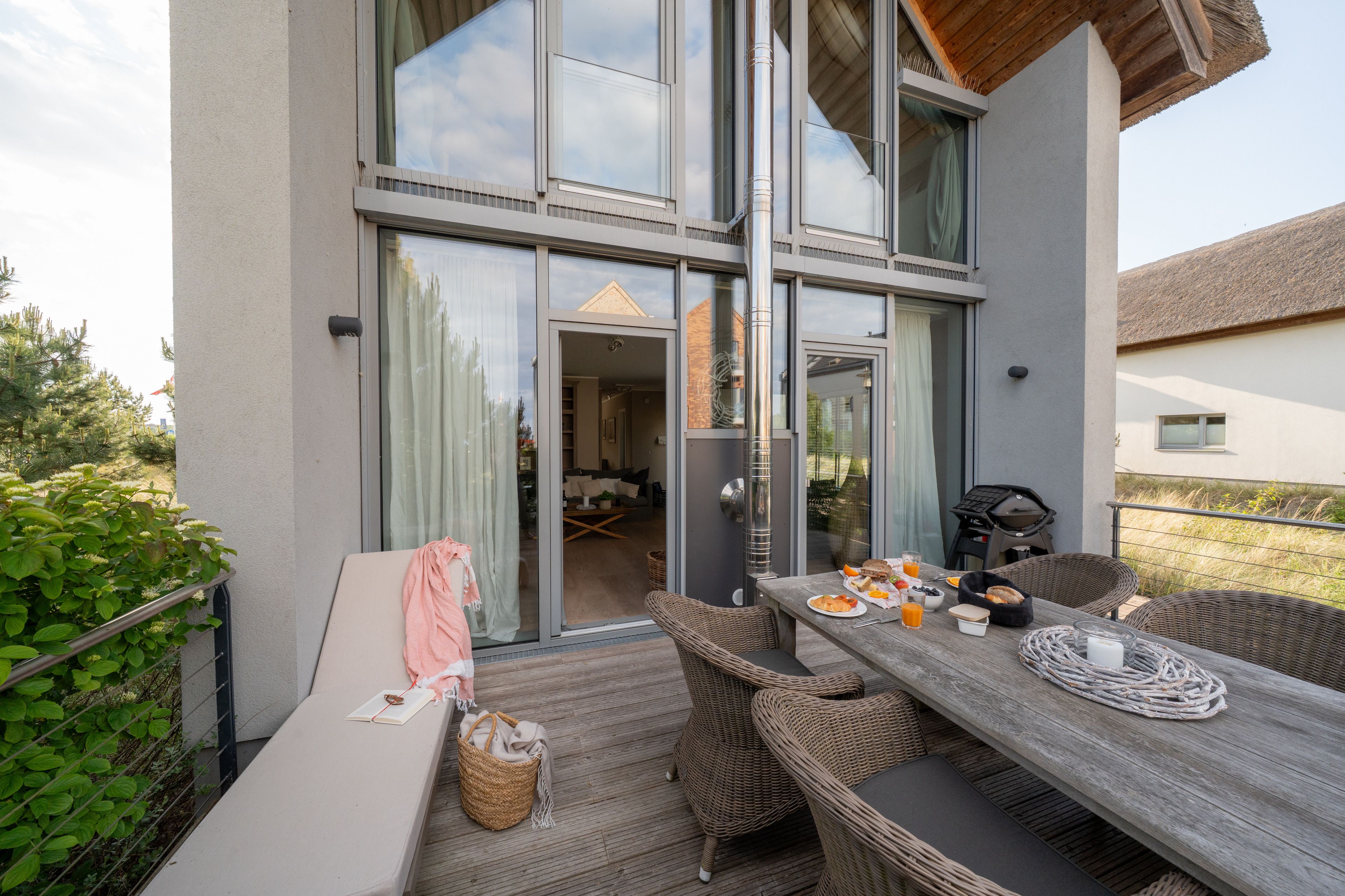 Das 137 qm große, im Landhausstil eingerichtete Reetdachhaus Newport bietet Platz für Familien und Gäste mit bis zu 6 Personen.
