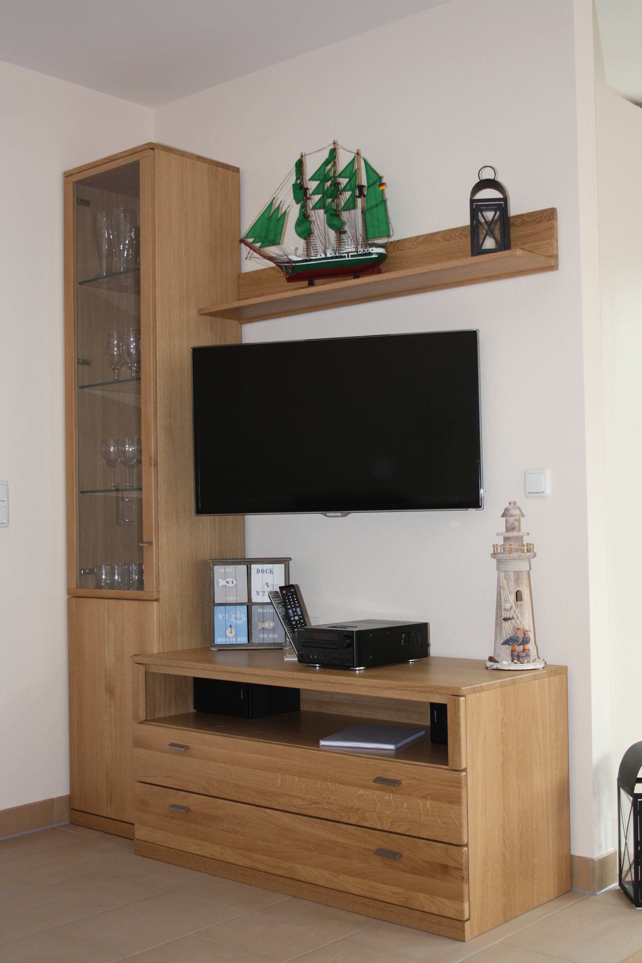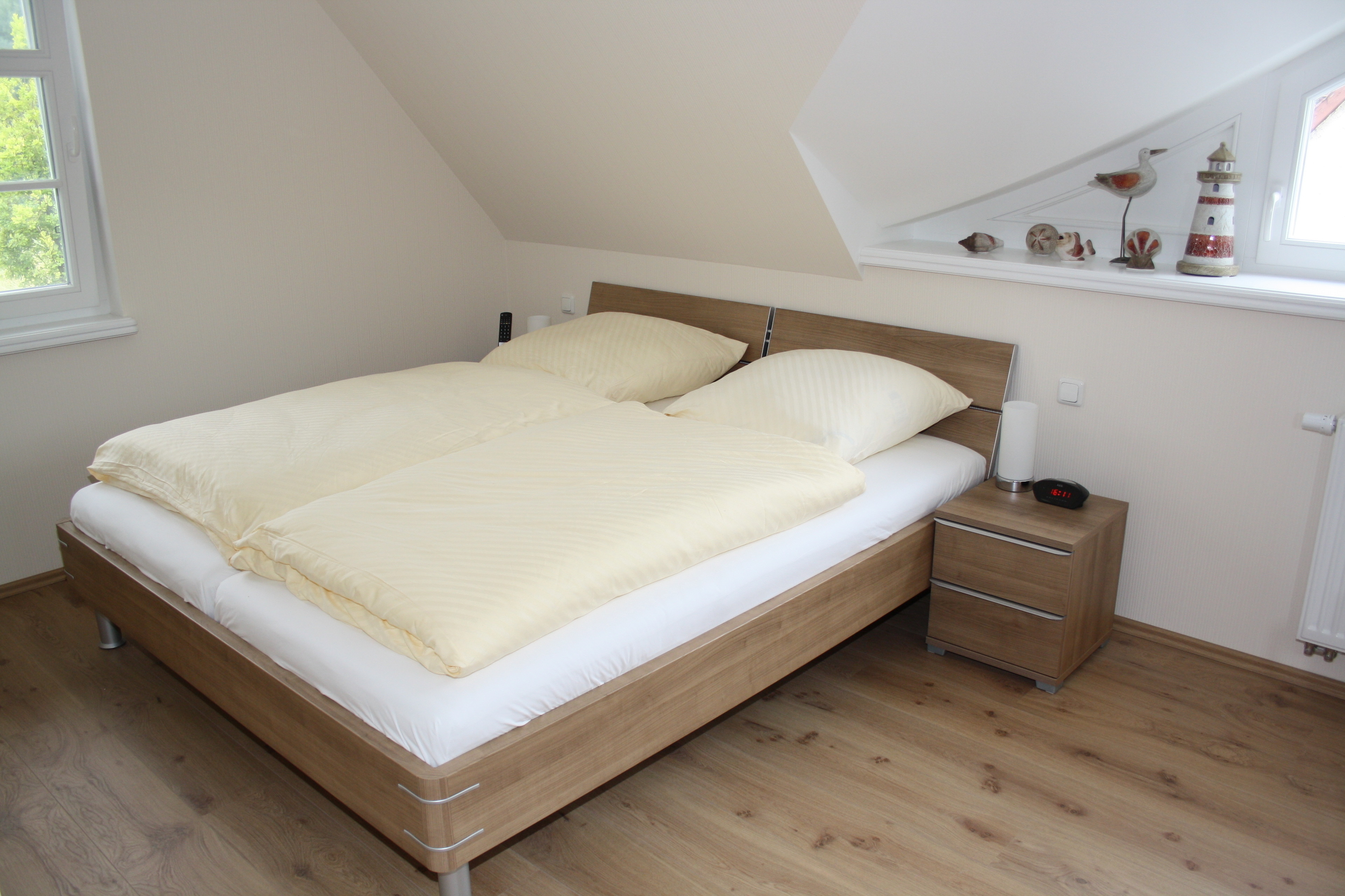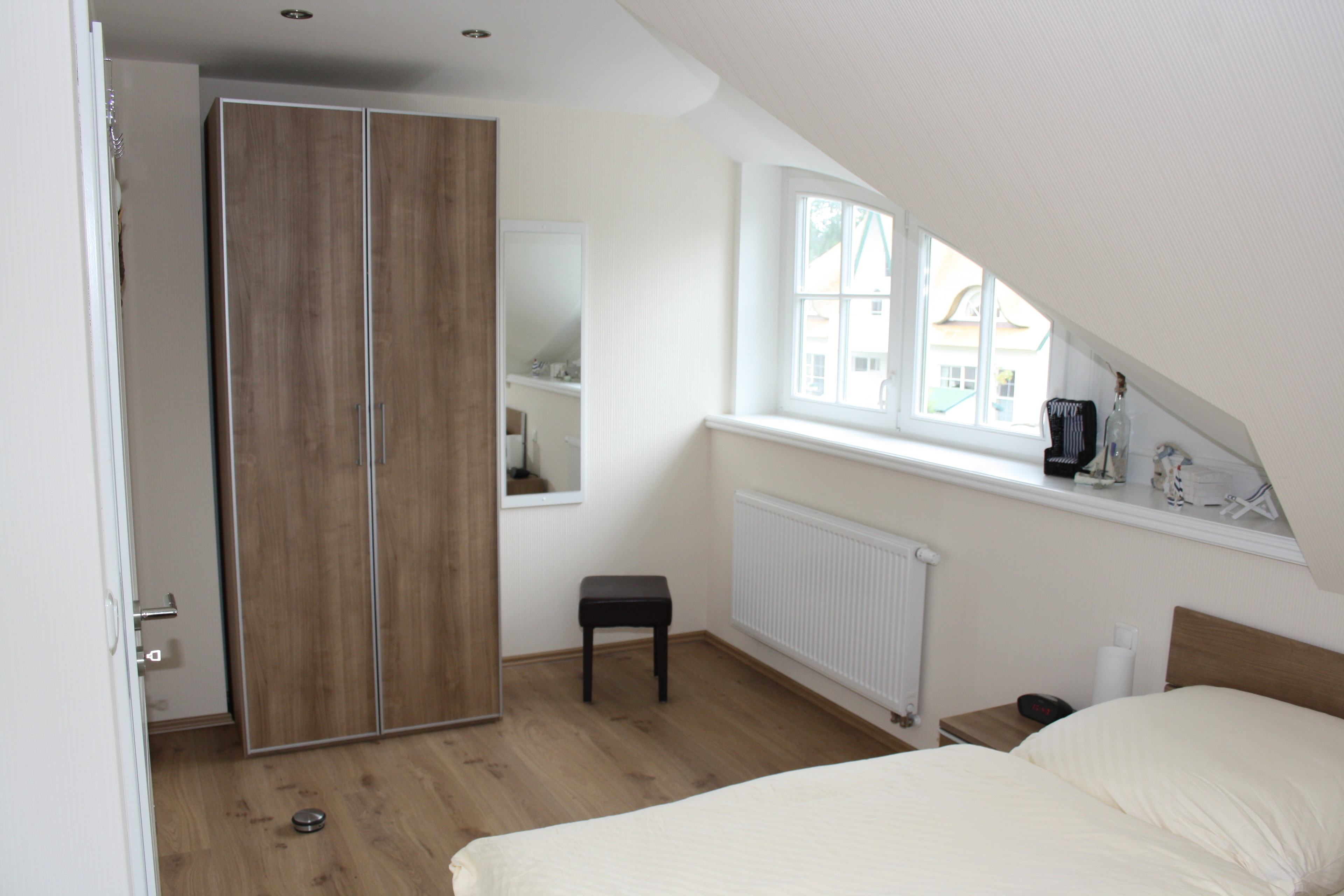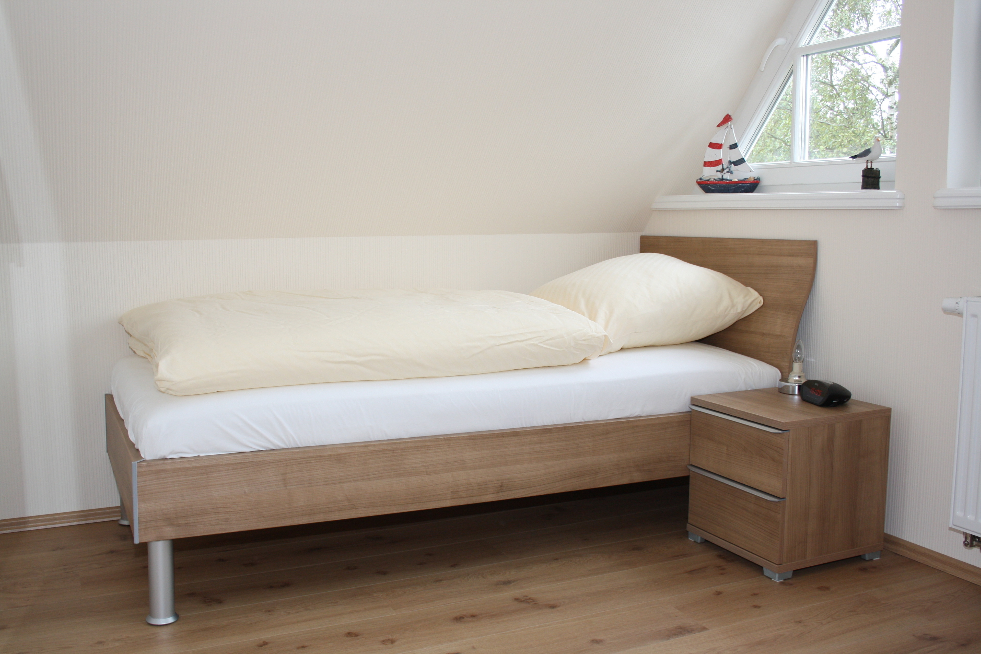 Es ist ausgestattet mit drei Schlafräumen (2x1 Doppelbett, 1x2 Einzelbetten), einem Wohnbereich mit einer Küchenzeile, zwei Bädern (2x Dusche/ WC) und einer Sauna.