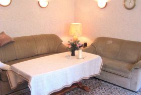 Das Ferienhaus Monika ist ca. 80 m² groß und bietet Platz für 4 Personen. Die Wohnfläche verteilt sich auf ein Wohnzimmer mit TV und Sitzecke, zwei Schlafzimmer mit jeweils einem Doppelbett. Die separate Küche ist u.a. mit Mikrowelle, 4-Plattenherd sowie Kaffeemaschine ausgestattet - eine kleine Speisekammer geht von der Küche ab. Das Tageslicht-Badezimmer ist mit Dusche / WC versehen. Eine eigene möblierte Terrasse gehört mit zum Ferienhaus - der Garten steht jedoch allen Gästen der kleinen Ferienanlage zur Verfügung.