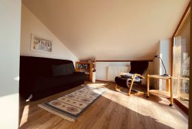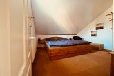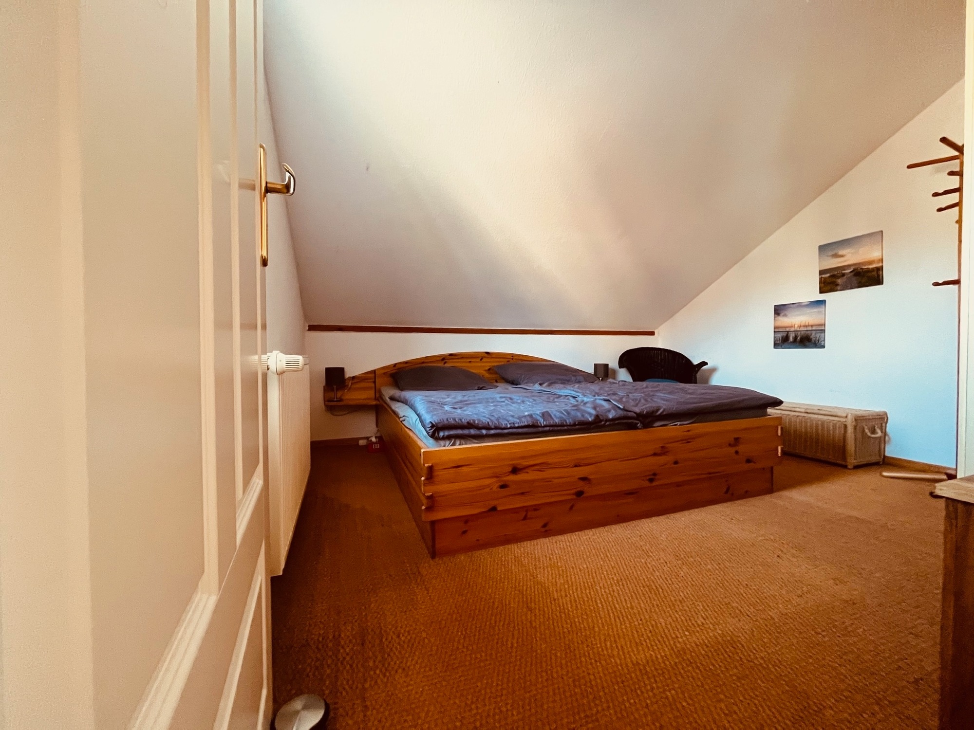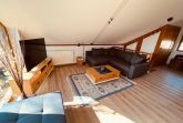Des Weiteren 1 Zimmer mit 2 Schlafmöglichkeiten sowie 1 Dusch-Bad. Über eine Treppe gelangt man in den oberen Bereich des Objektes. Hier befinden sich das Wohnzimmer mit DTV sowie 1 Schlafzimmer mit Doppelbett. Über die großzügig gestaltete Fenster-Giebelfront genießt man den Blick in die Natur, da dieses Haus in einer Endlage liegt.