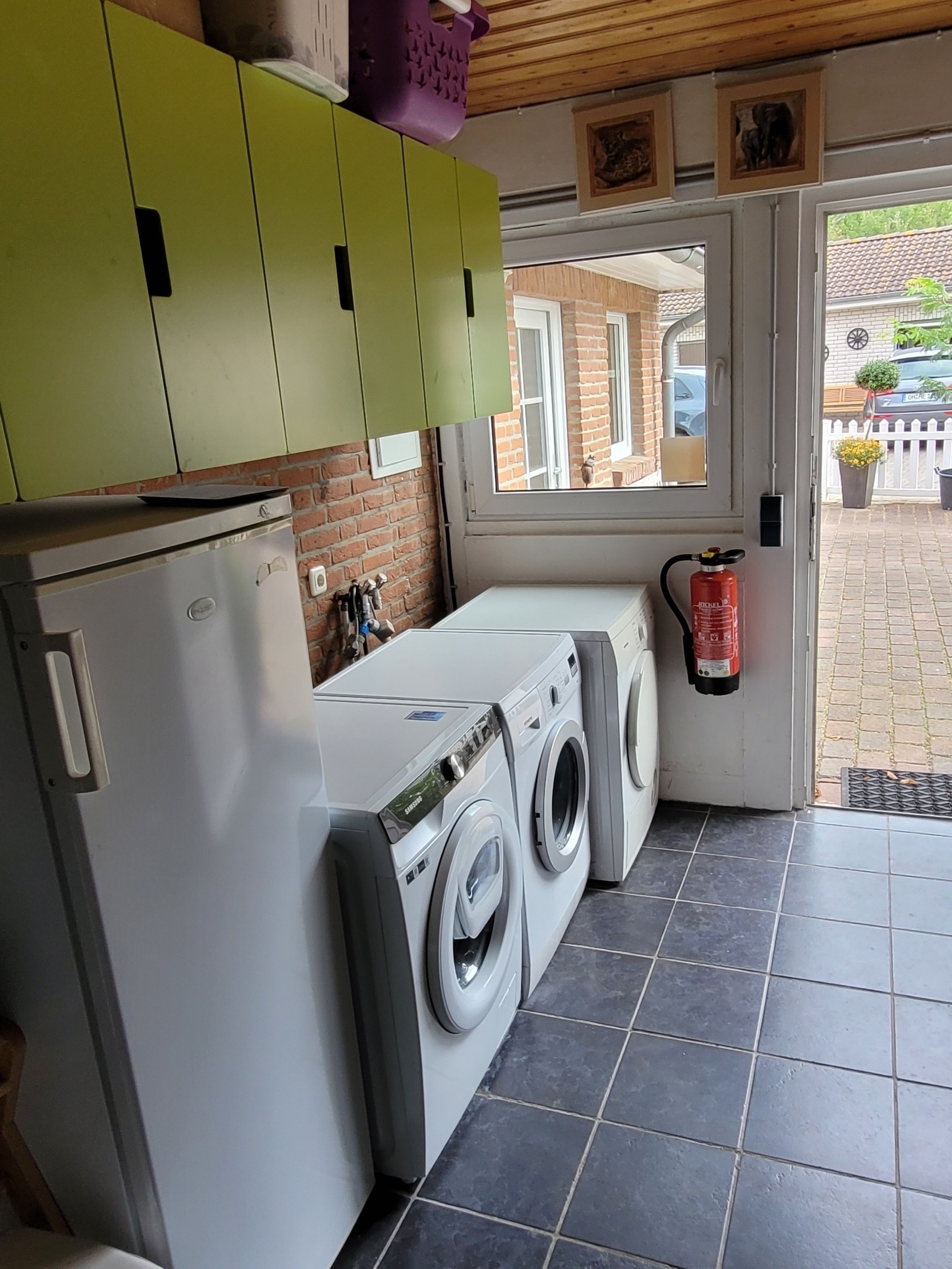 Im frei zugänglichen Wirtschaftsraum können Waschmaschine und Trockner kostenfrei mitbenutzt werden. Angelbeute findet auf Anfrage Platz im separaten Tiefkühler (und der hauseigenen Pfanne der Vermieter... 😉).
