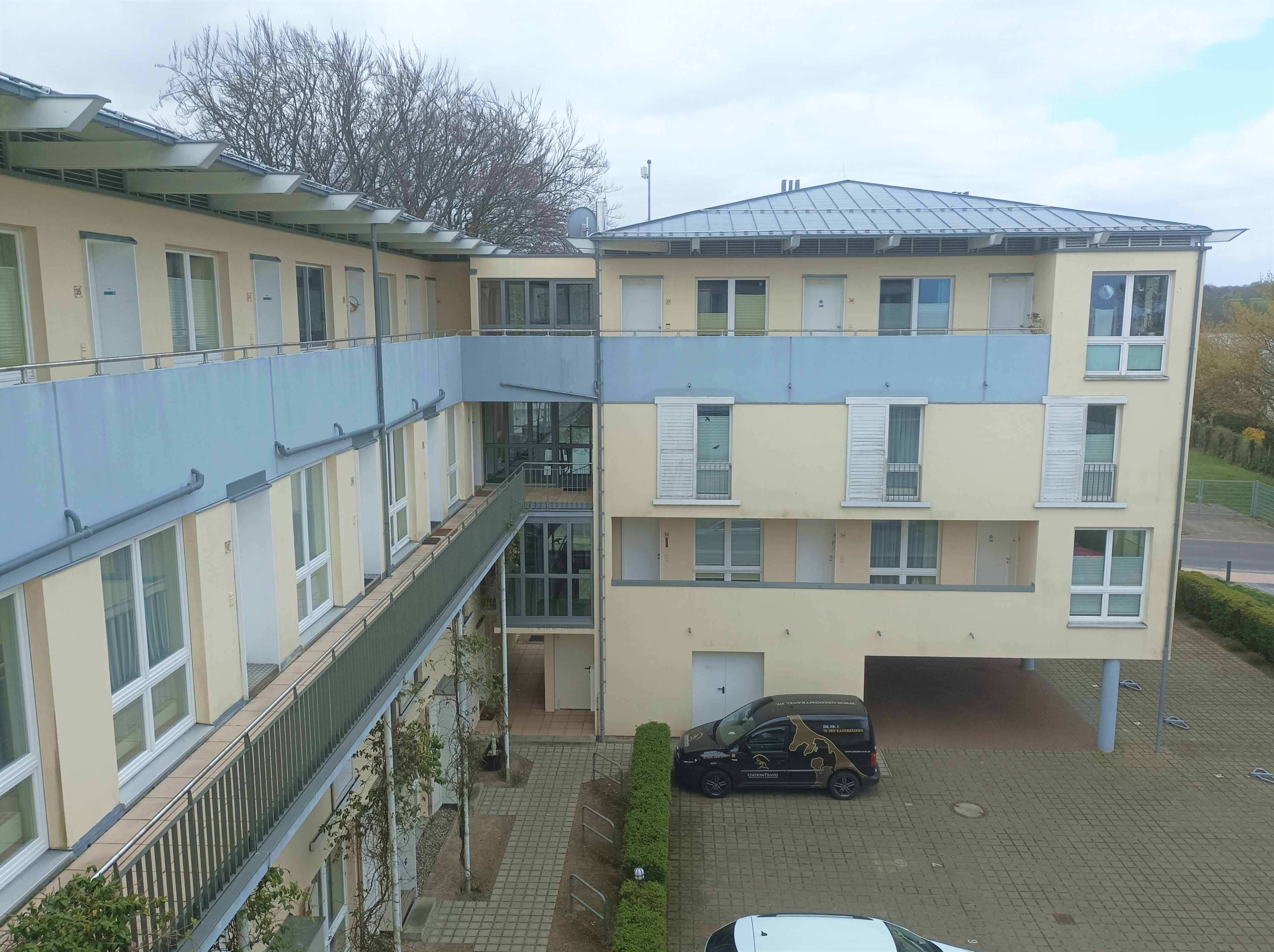 Trotz der ruhigen Umgebung erreichen Sie das Ortszentrum von Bansin in nur 7 Gehminuten, während das Zentrum von Heringsdorf nach einem etwa 15-minütigen Spaziergang erreichbar ist. Zu jeder Wohnung gehört ein eigener Pkw-Stellplatz auf dem Grundstück, der im Preis inbegriffen ist. Zudem sorgt ein Fahrstuhl im Haus für zusätzlichen Komfort.