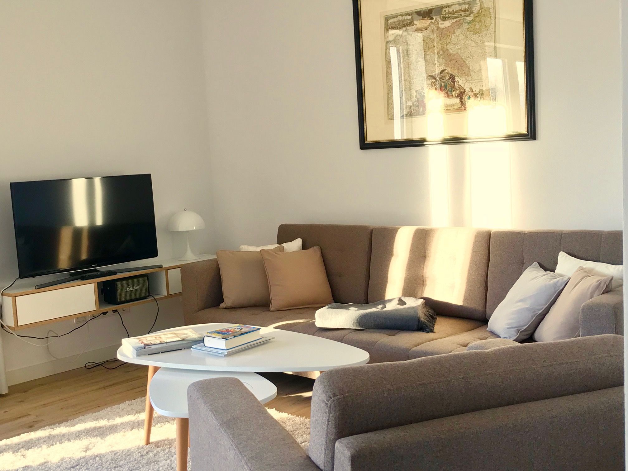 Mit der Marshall Bluetooth Anlage können Sie Ihre gesamte Musikbibliothek auch im Urlaub genießen. Falls Sie genug vom Meeresrauschen haben sollten, stehen je ein Flachbildfernseher im Wohnzimmer und einem der Schlafzimmer zur Verfügung.