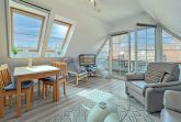 Die Ferienwohnung Ostseeauszeit empfängt Sie mit einer harmonischen Kombination aus modernem Komfort und maritimem Ambiente. Der helle Wohnbereich lädt zu entspannten Stunden ein, während die voll ausgestattete Küchenzeile keine Wünsche offenlässt. Genießen Sie Ihre Mahlzeiten auf der überdachten Dachloggia mit Blick ins Grüne. Das moderne Badezimmer und die gemütlichen Schlafzimmer bieten zusätzlichen Komfort für erholsame Nächte.