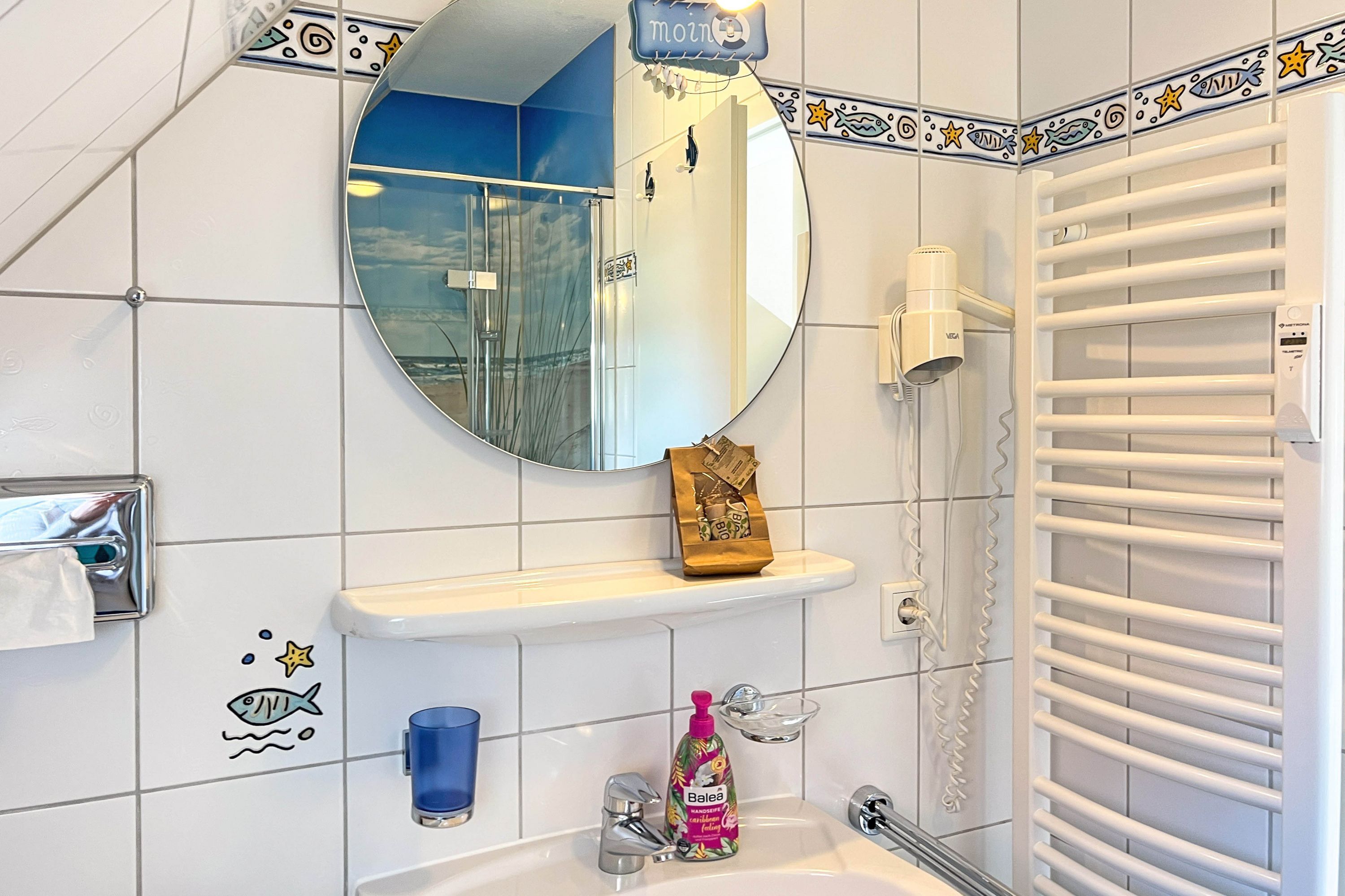 • Badezimmer: Modernes Bad mit Dusche/WC, Haartrockner und Fliegengitter