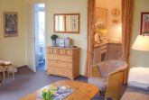 Von dem möblierten Balkon schaut man in den Kurpark. Eine Fahrstuhlanlage sorgt für Bequemlichkeit, was insbesondere ältere Gäste zu schätzen wissen.Es handelt sich um eine sehr helle Wohnung. Das Schlaf-Zimmer hat ein großes Fenster zum Kurpark. Im Wohnzimmer befinden sich 2 Glas-Türen zum Balkon und zusätzlich gibt es im WZ ein großes Fenster gen Osten (Sonnenaufgang). Auch das Bad verfügt über ein großes Fenster auch gen Osten (sonnig).