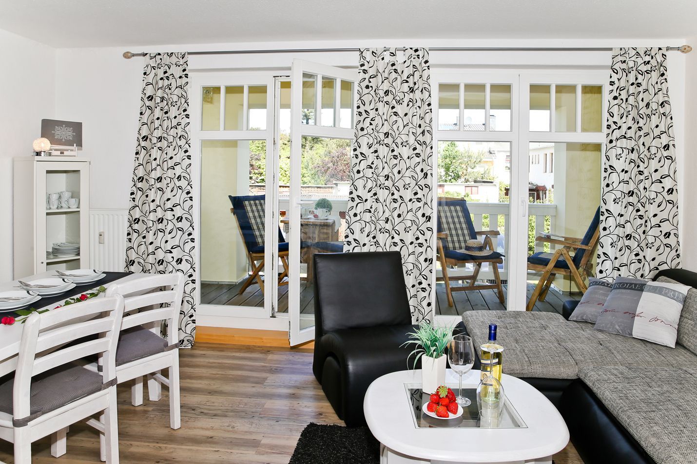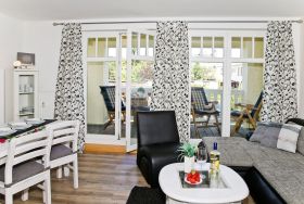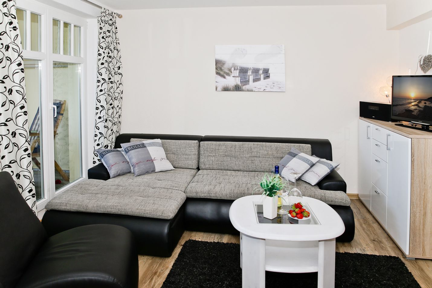 Der offene Wohnbereich ist mit einer gemütlichen Sitzgruppe mit Schlaffunktion eingerichtet der separate Eßbereich bietet Platz für 4 Personen.