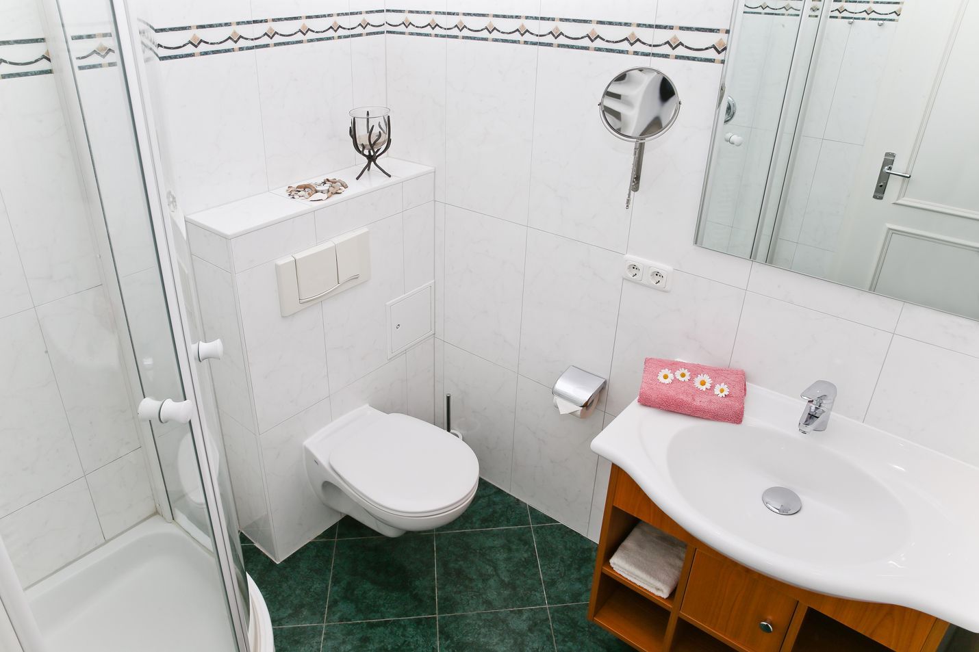 Ein Schlafzimmer bietet ein Doppelbett, das zweite Schlafzimmer bietet 1 Einzelbett zum Schlafen. Das Duschbad/WC rundet die moderne Ferienwohnung ab. Ihr PKW-Stellplatz hat die Nr. Haus III WE 4.