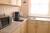 Die separate Küche ist gut ausgestattet mit Kühlschrank, Spüle, 2- Platten-Cerankochfeld, Mikrowelle, Toaster und Kaffeemaschine.