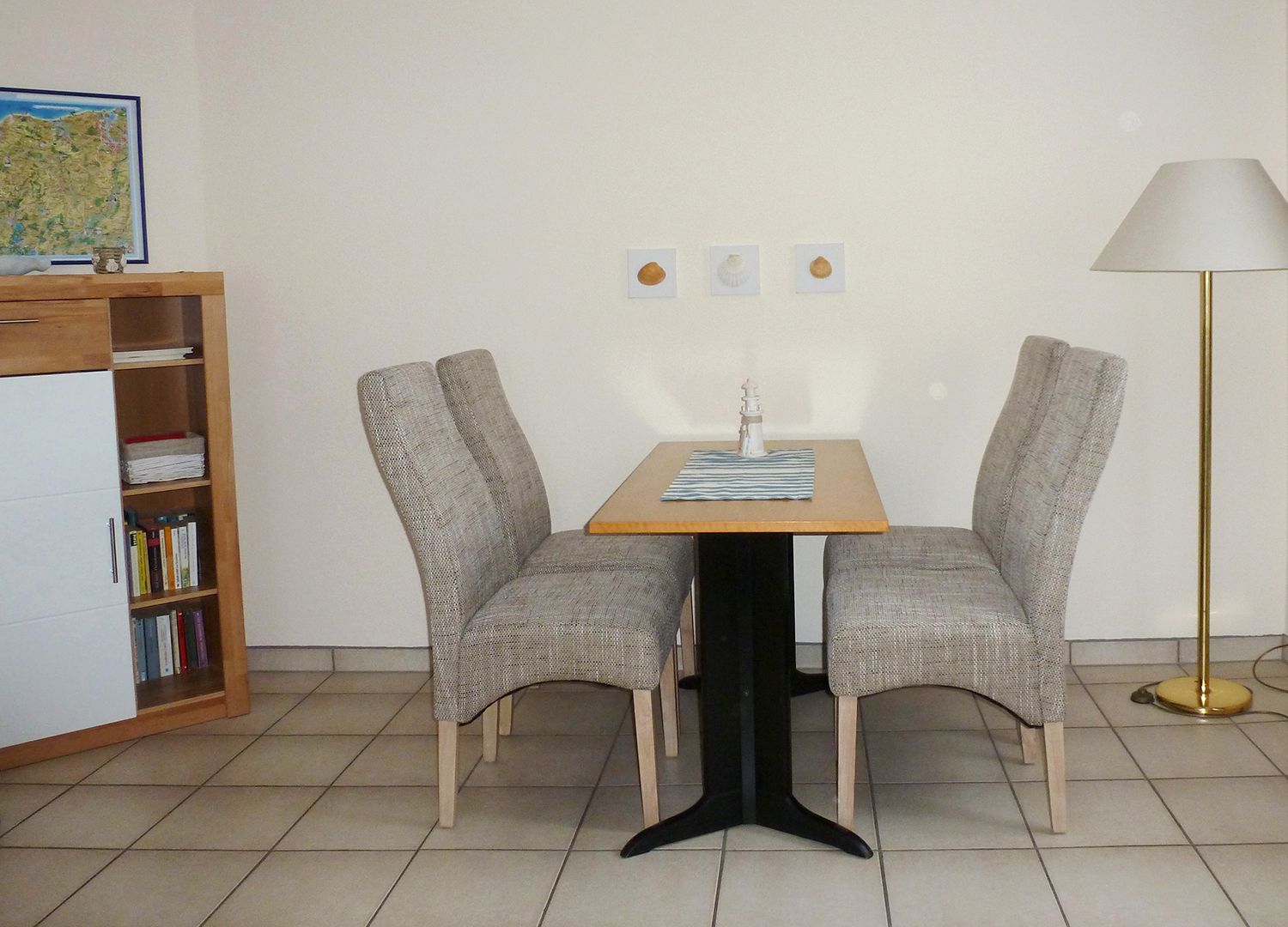 Neben dem geräumigen Wohn- und Esszimmer mit klappbarer Schlafcouch, gibt es ein Schlafzimmer mit Doppelbett, ein saniertes Bad mit Dusche und einen Abstellraum mit Garderobe.