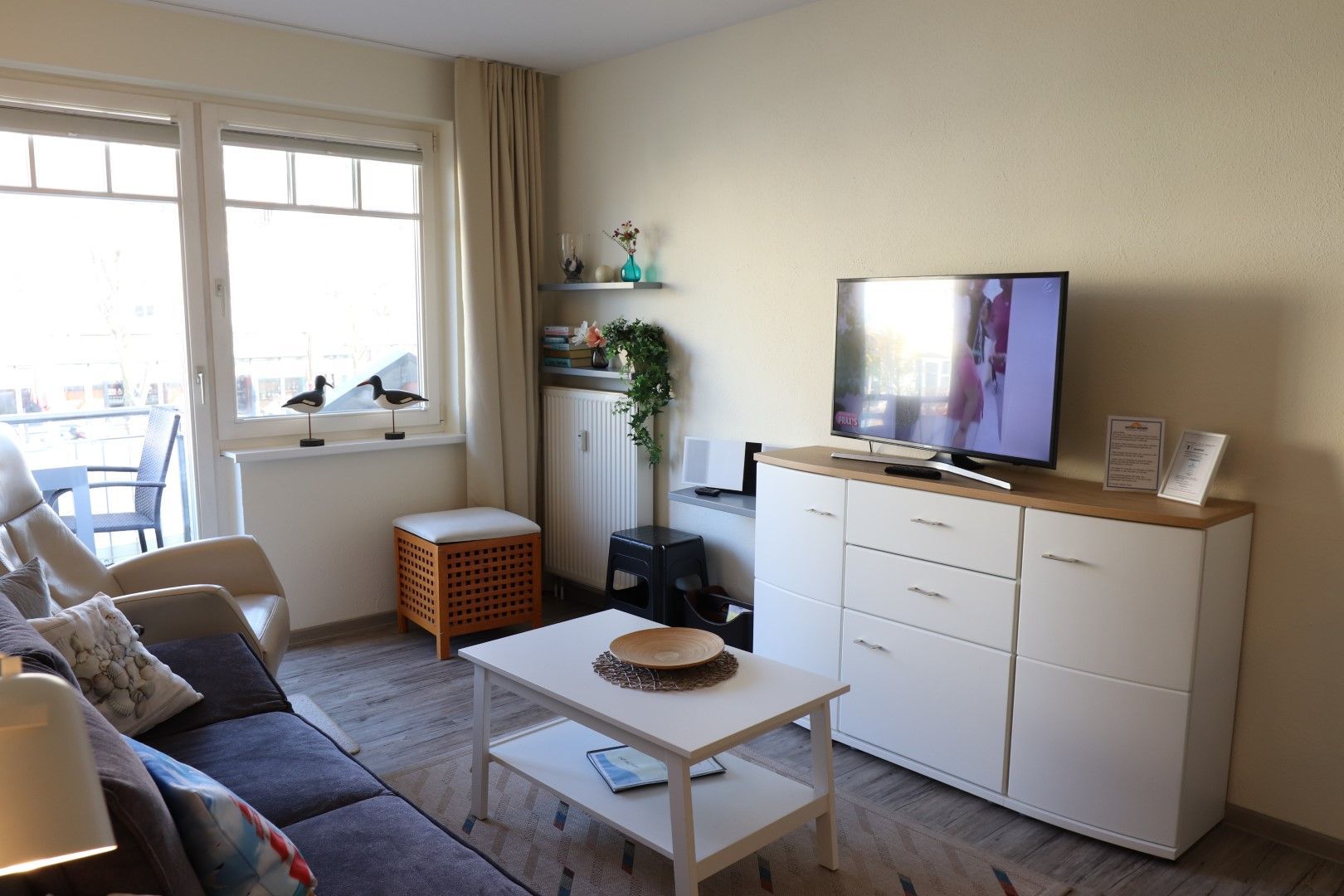Die gemütliche Ferienwohnung liegt in der ersten Etage der im Bäderstil errichteten Appartementanlage. Vom Balkon können Sie auf das bunte Treiben in der Strandstraße blicken. In unmittelbarer Umgebung des Hauses finden Sie Cafés, Restaurants und Geschäfte.