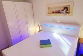 Für Ihre nächtliche Erholung ist das Schlafzimmer mit einem modernen Box-Spring-Bett ausgestattet. Das Zimmer lässt sich durch ein Rollo zusätzlich abdunkeln.