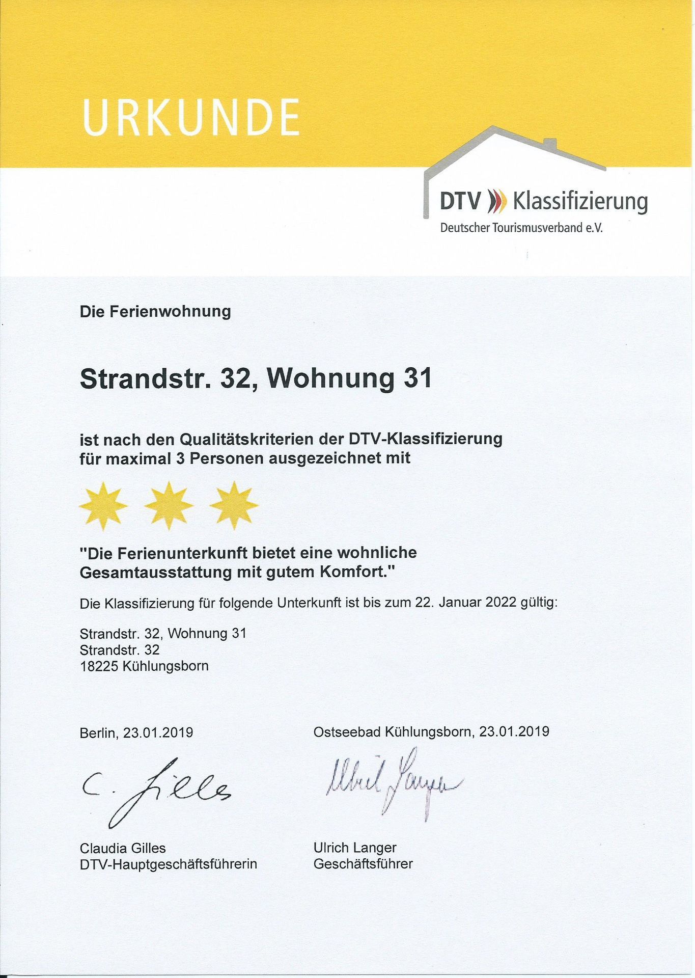 Sie liegt in ruhiger Lage und wurde vom deutschen Tourismusverband e. V. mit drei Sternen ausgezeichnet worden (siehe Zertifikat).