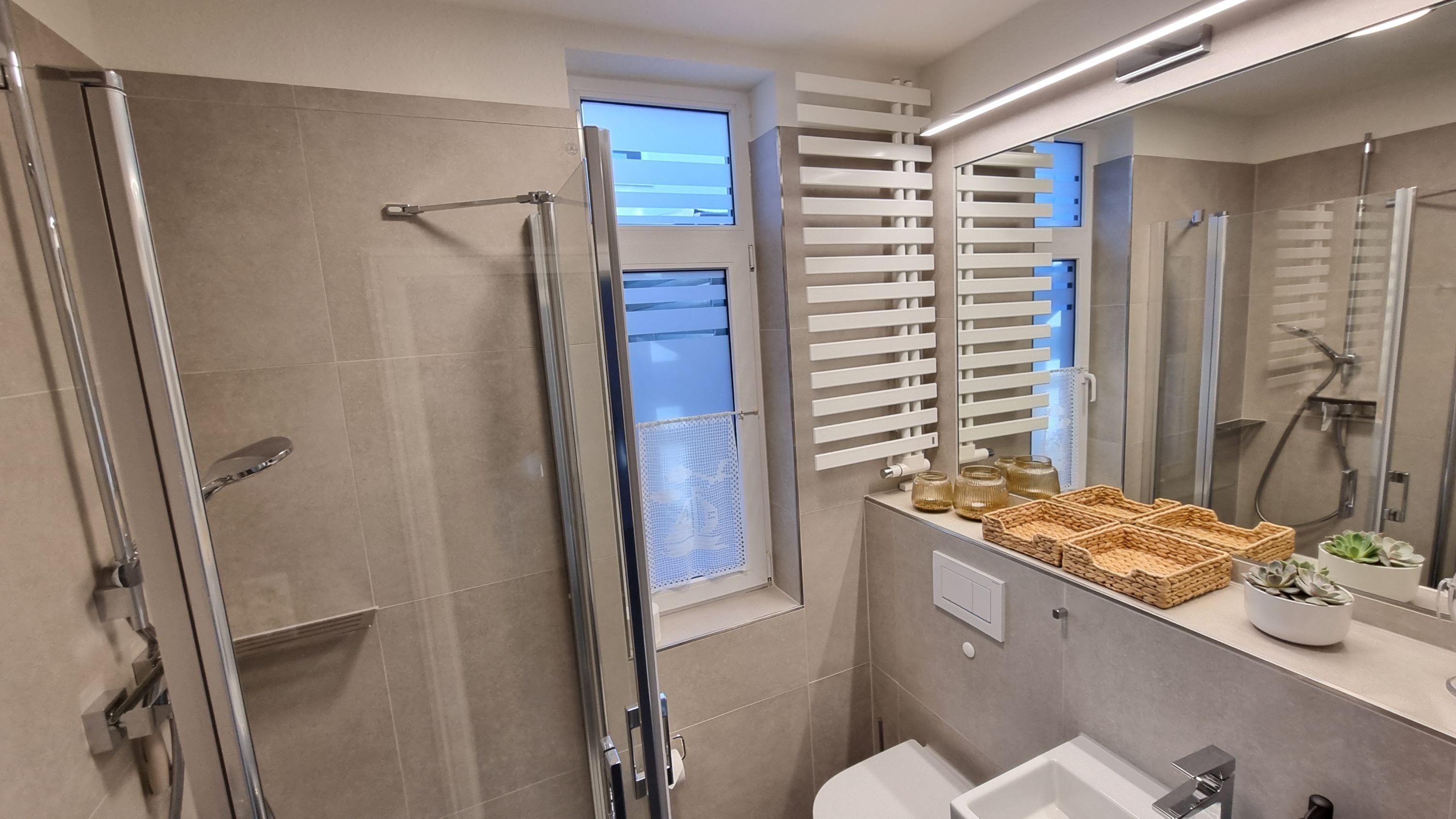 Ein Duschbad/WC rundet die Ferienwohnung ab.