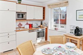 Die gemütliche 3-Zimmer-Fewo befindet sich im 2. Obergeschoss, ist ca. 60 m² groß und für bis zu 4 Personen eingerichtet. Schlafmöglichkeiten stellt ein Doppelbett im Schlafzimmer und ein Etagenbett im 2. Schlafzimmer.