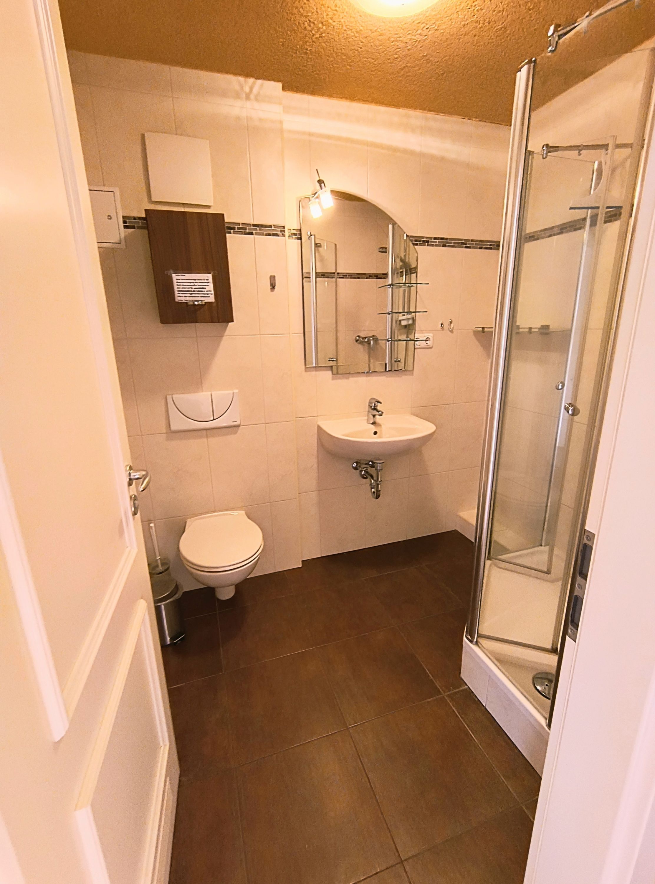 Das Duschbad/WC ergänzt die Ferienwohnung. Die Terrasse geht nach Süden raus und die Wohnung kann darüber ebenfalls betreten werden. Kleine Hunde sind auf Nachfrage gestattet.