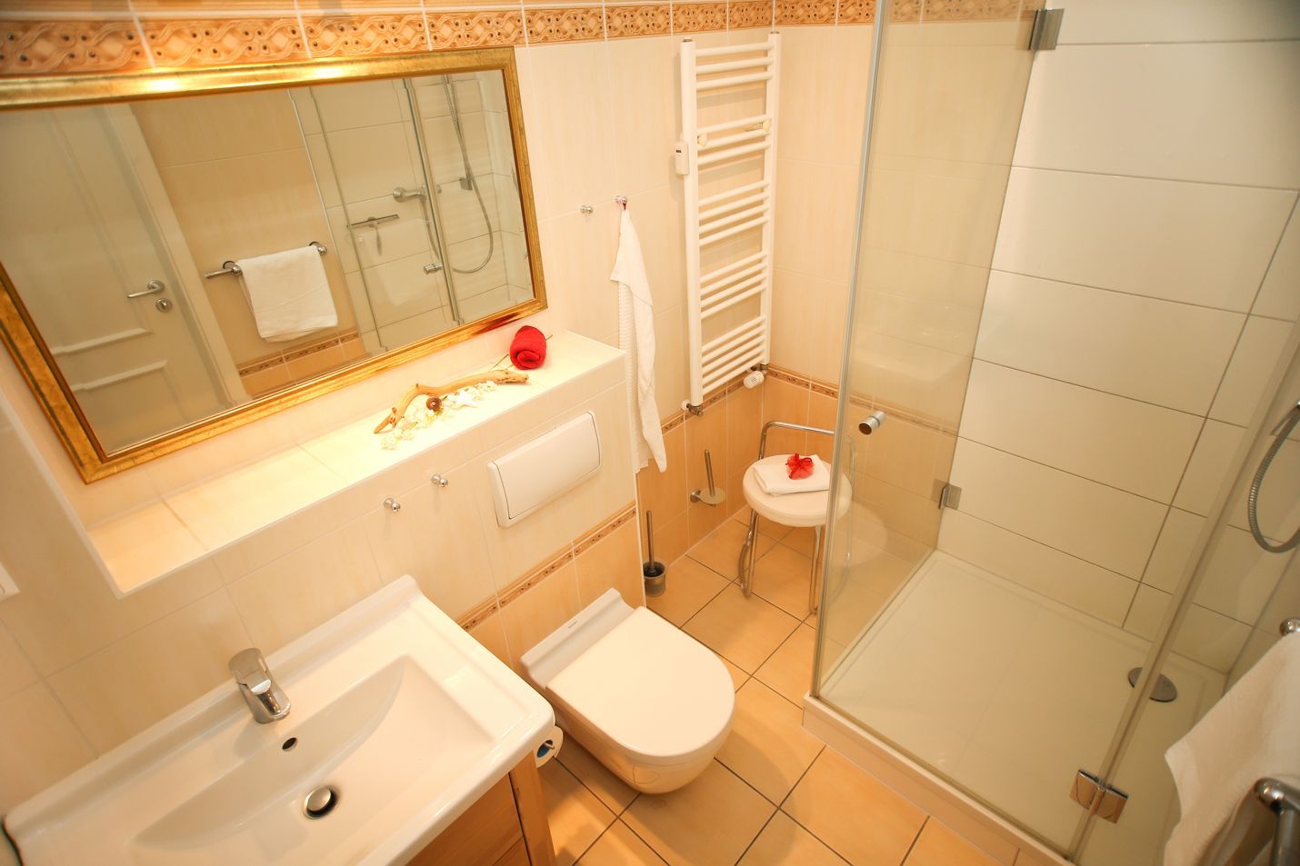 Eine Terrasse lädt zum Verweilen ein. Ein Duschbad/WC rundet die Ferienwohnung ab. Die Ferienwohnung ist mit Fliesen ausgestattet. Die Schlafzimmer verfügen über einen hochwertigen Vinyl-Boden.
