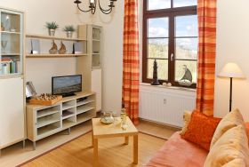 Die moderne 2-Zimmer-Ferienwohnung befindet sich im Hochparterre und zur Vorderseite des historischen Gebäudes. Sie ist für 3 Personen ausgestattet