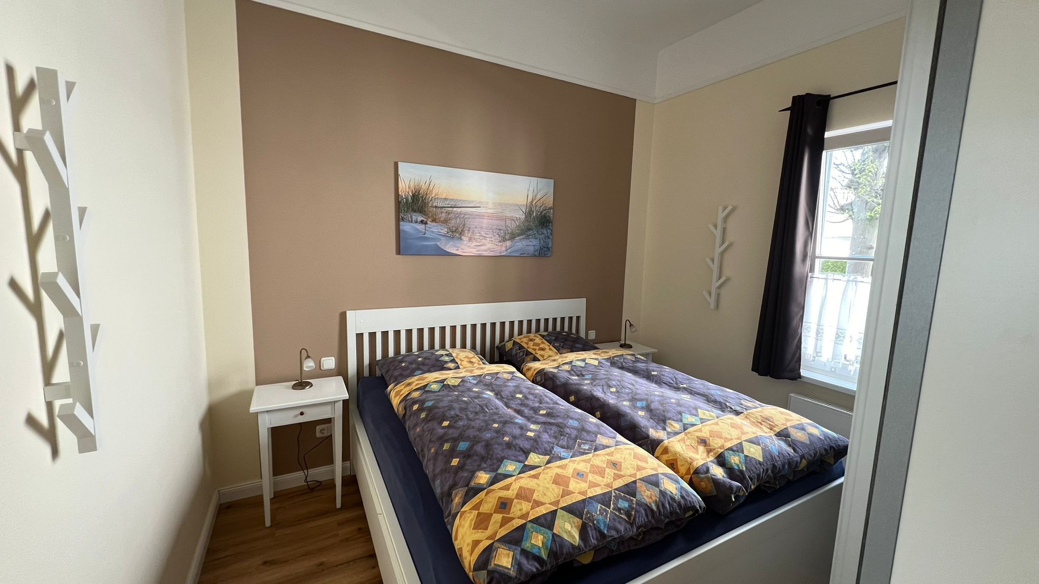 In den beiden Schlafzimmern gibt es jeweils ein Doppelbett. Einmal mit 2 Einzelmatratzen und einmal mit durchgehender Matratze.