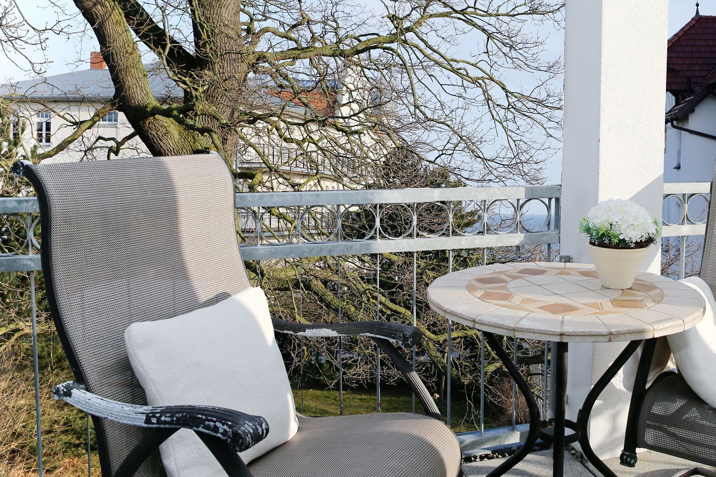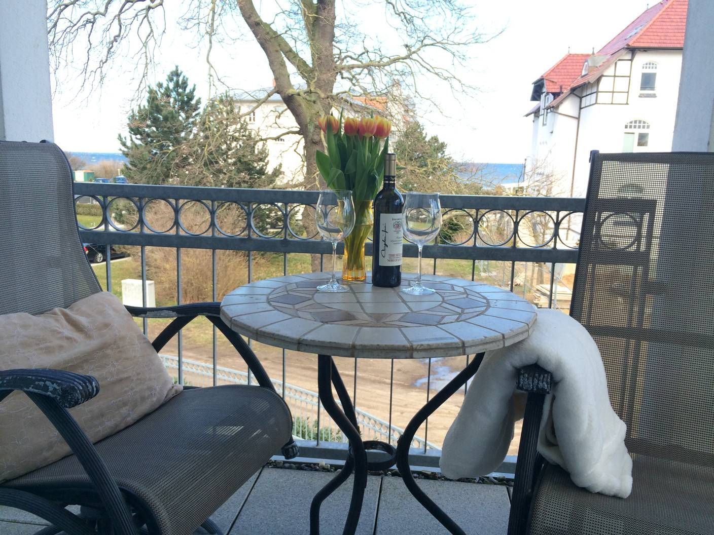 Der große Nord-Ost-Balkon bietet einen wunderschönen Ausblick zur Ostsee.