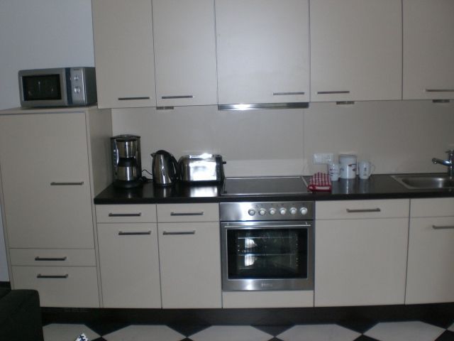 Die vollausgestattete, separate Einbauküche verfügt unter anderem über einen Geschirrspüler, Mikrowelle, Backofen und Ceranherd.