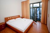 Die Wohnung liegt im 1.OG des Hauses mit einer Loggia sowie einem Balkon zur Nordseite und einem Balkon zur Westseite. Sie bietet für 4 Personen ein Schlafzimmer mit Doppelbett und ein Schlafzimmer (durch einen Raumteiler vom Wohnbereich getrennt) mit Einzelbett sowie einem Schlafsessel.