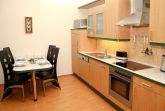 Der Wohnbereich ist mit einer modernen Einbauküche m. Geschirrspüler, einem Esstisch und einer Sitzgruppe mit Couchgarnitur ausgestattet. Zur modernen Einrichtung gehört Farb-TV dazu. Das Duschbad/WC rundet die schöne Ferienwohnung ab.
